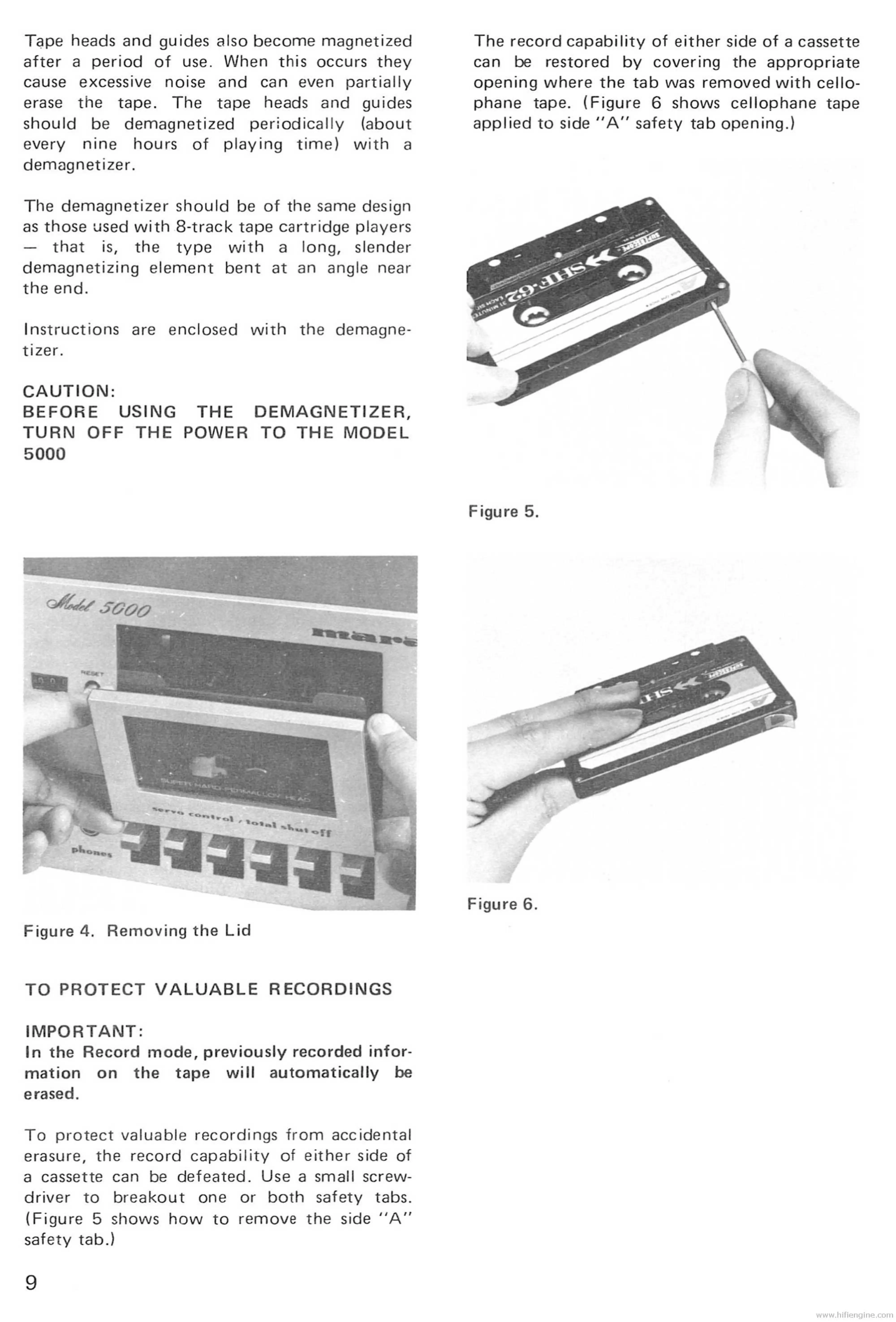 Marantz 5000 - Demagnetizing Heads and Guides; Demagnetizer Safety Caution; Protecting Recordings from Erasure