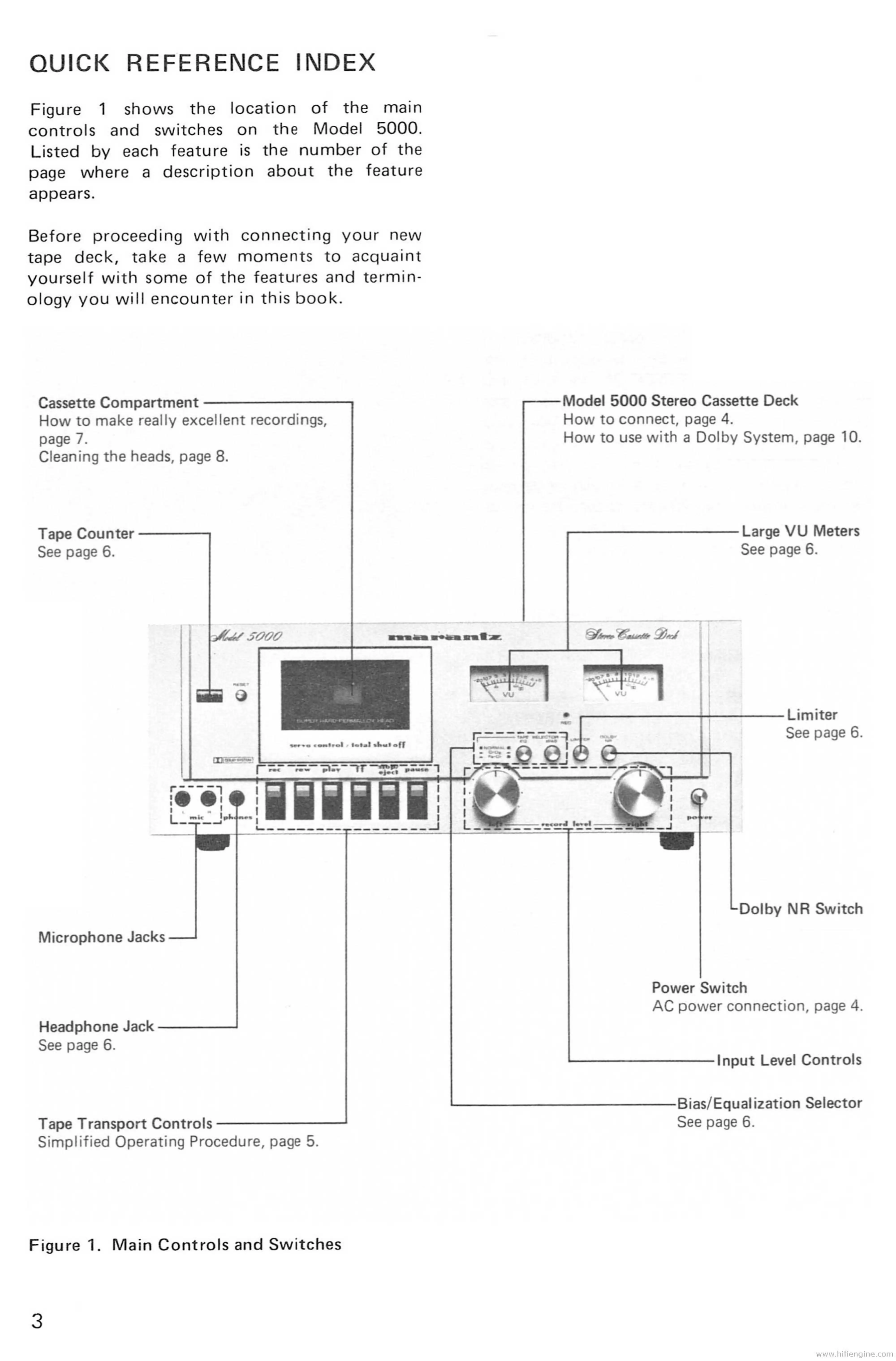 Marantz 5000 - QUICK REFERENCE INDEX; Cassette Compartment Use; Tape Counter Function; Microphone Input Jacks