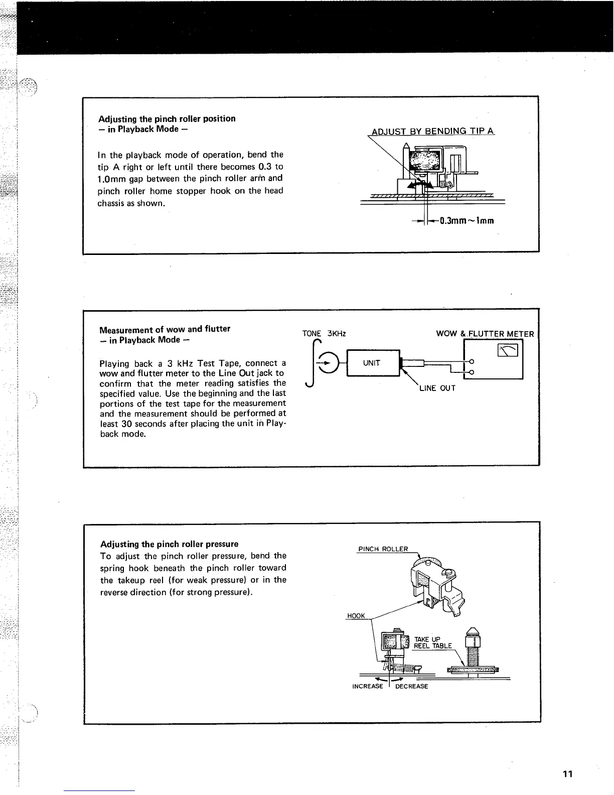 Marantz 5020 - Pinch Roller Adjustments; Pinch Roller Position and Pressure; Wow and Flutter Measurement