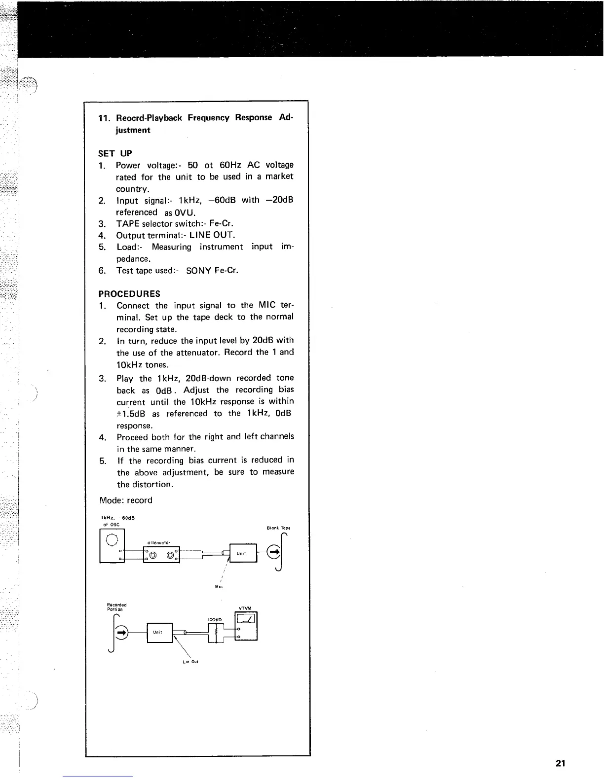 Marantz 5020 - Record-Playback Frequency Response; Frequency Response Setup & Procedure