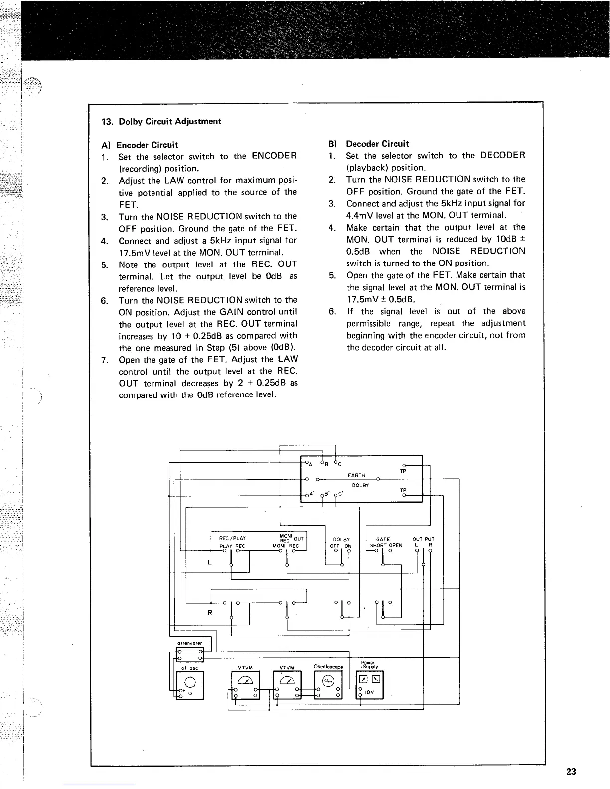 Marantz 5020 - Dolby Circuit Adjustment; Encoder Circuit Adjustment; Decoder Circuit Adjustment