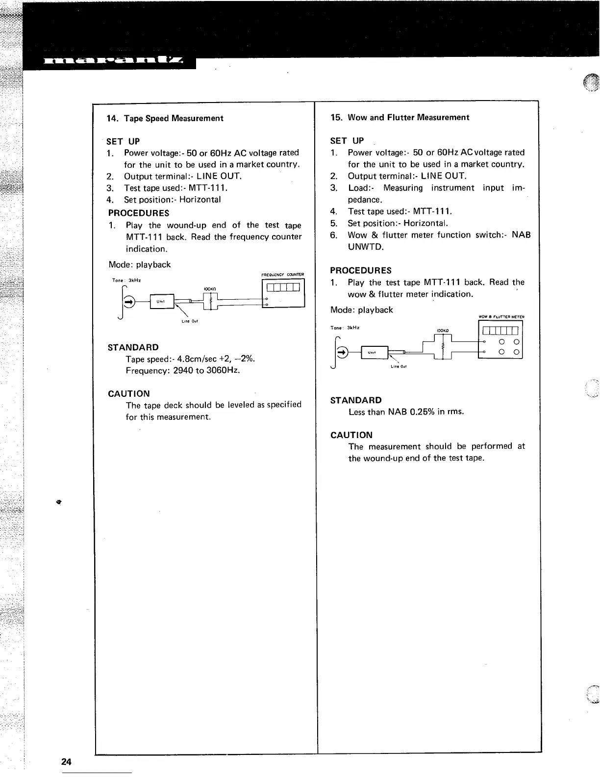 Marantz 5020 - Tape Speed and Wow;Flutter Measurements; Tape Speed Measurement Setup & Procedure; Wow and Flutter Measurement Setup & Procedure