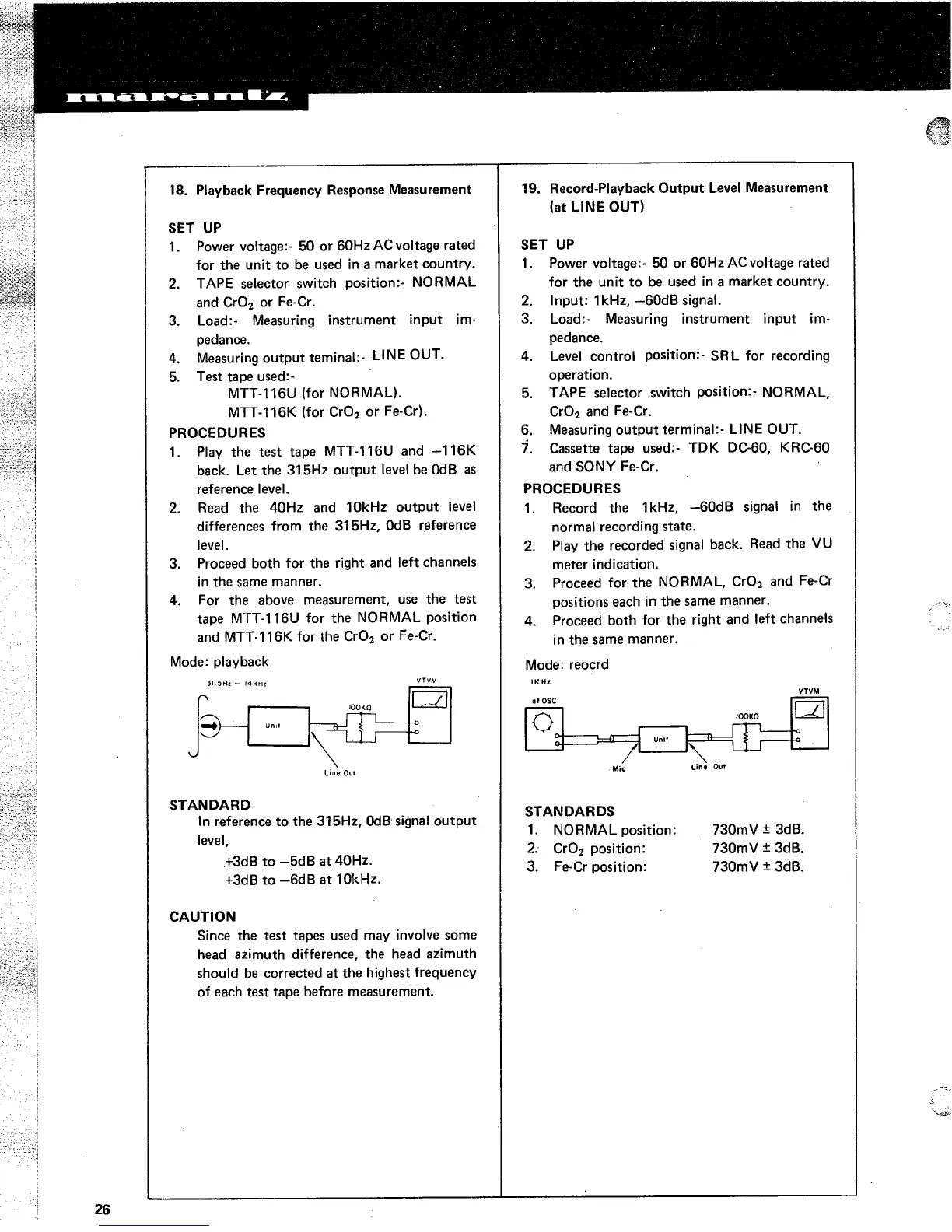 Marantz 5020 - Frequency Response Measurements; Playback Frequency Response; Record-Playback Output Level