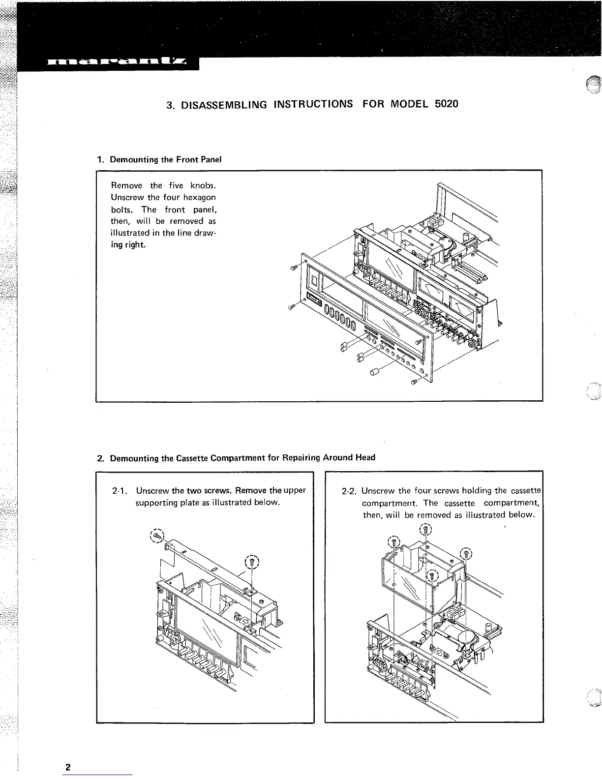 Marantz 5020 - Disassembling Instructions; Front Panel Removal; Cassette Compartment Removal