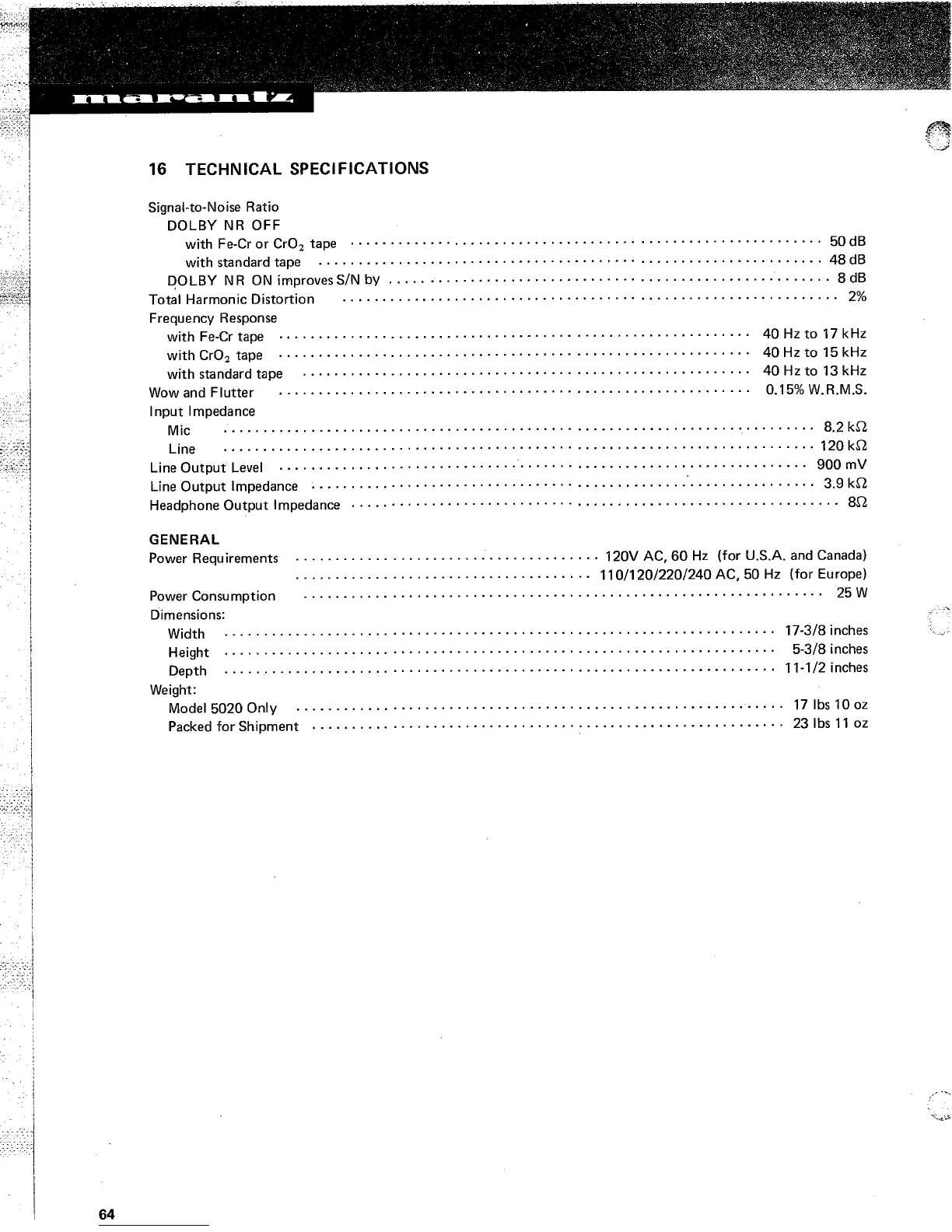 Marantz 5020 - Technical Specifications