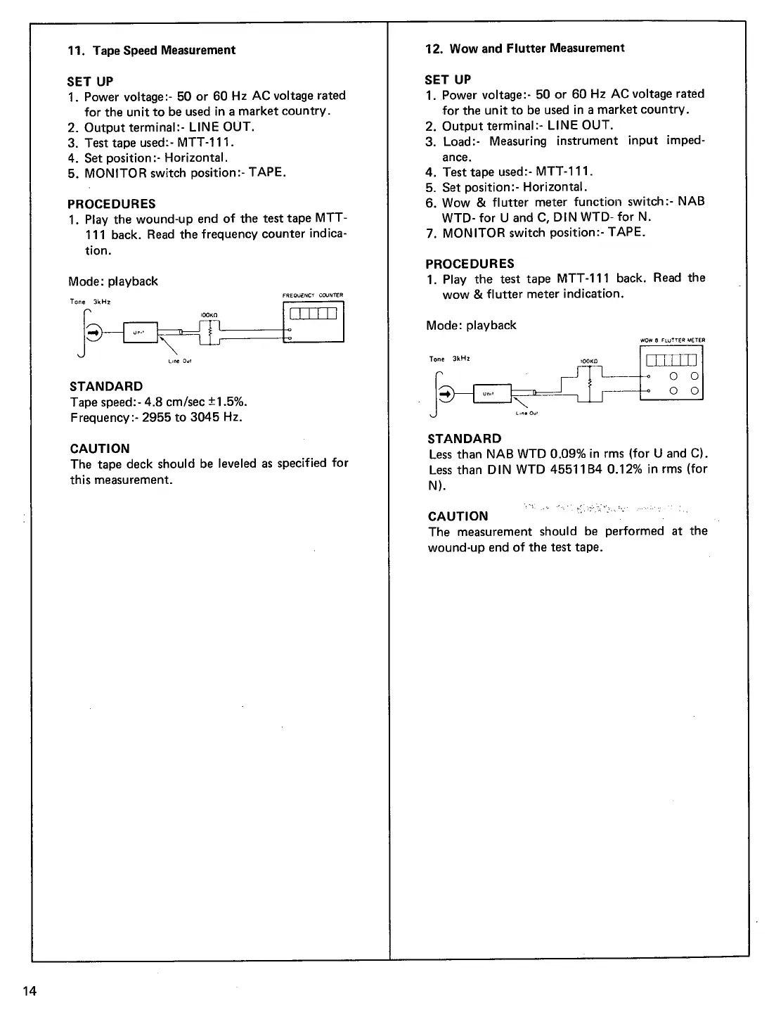 Marantz 5030 - Tape Speed and Wow;Flutter Measurements; Tape Speed Setup, Procedures, and Caution; Wow;Flutter Setup, Procedures, and Caution