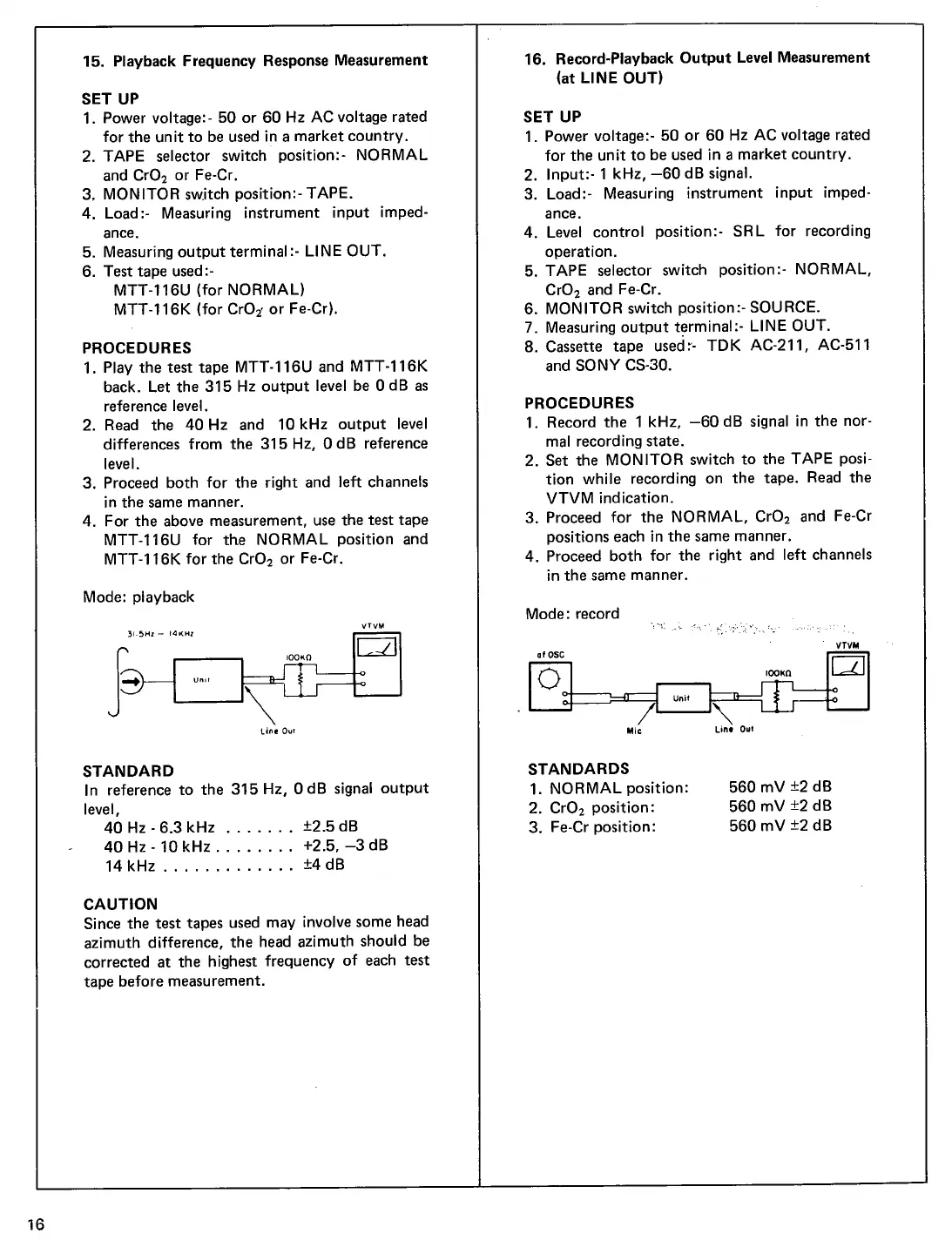 Marantz 5030 - Playback and Record-Playback Frequency Response Measurements; Playback Frequency Response Setup and Caution; Record-Playback Output Level Setup and Procedures