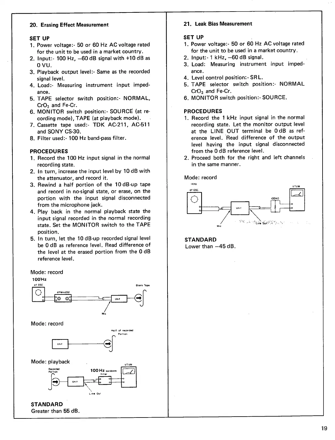 Marantz 5030 - Erasing Effect and Leak Bias Measurements; Erasing Effect Setup, Procedures, and Standard; Leak Bias Setup, Procedures, and Standard
