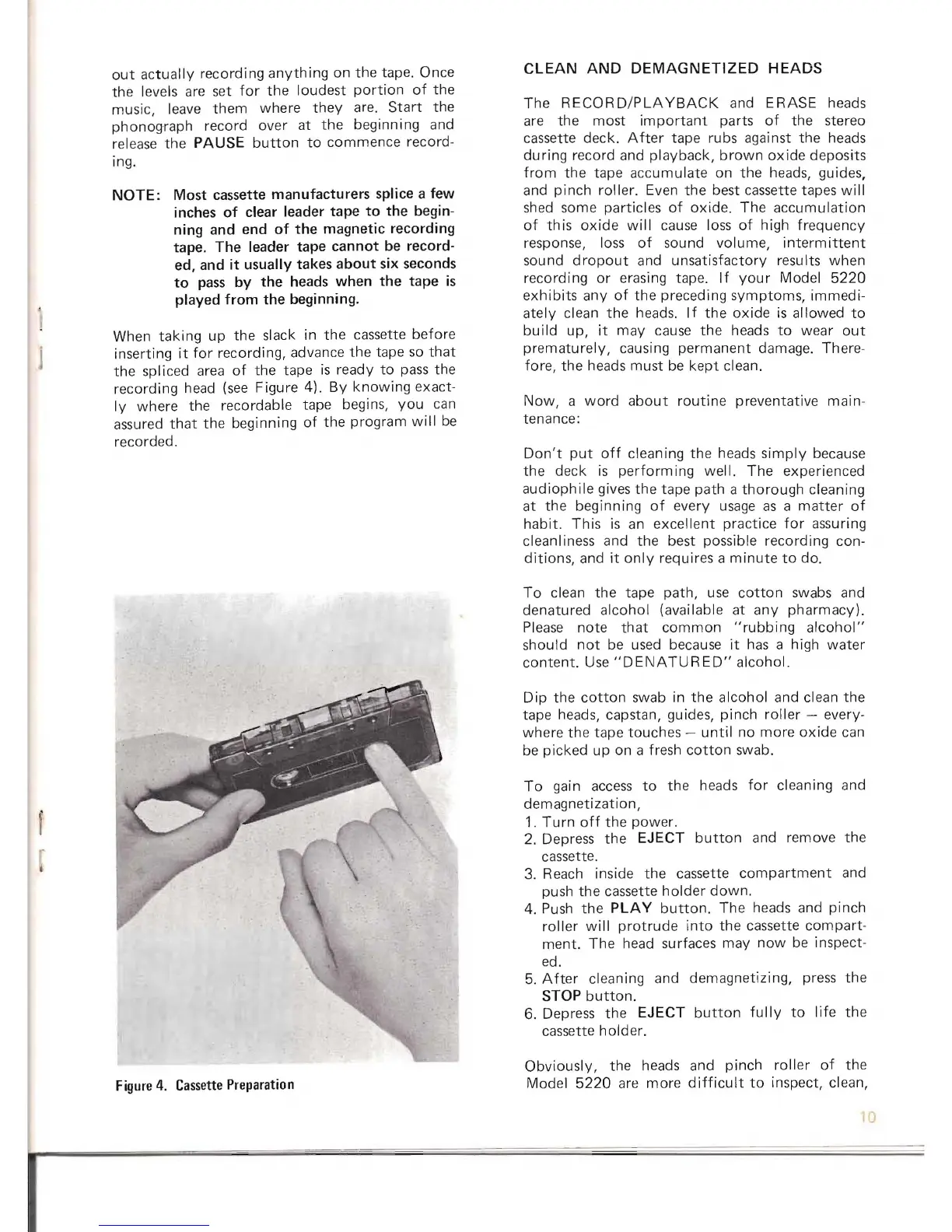 Marantz 5220 - Cassette Preparation for Recording; CLEAN AND DEMAGNETIZED HEADS; Routine Preventative Maintenance; Tape Path Cleaning Procedure