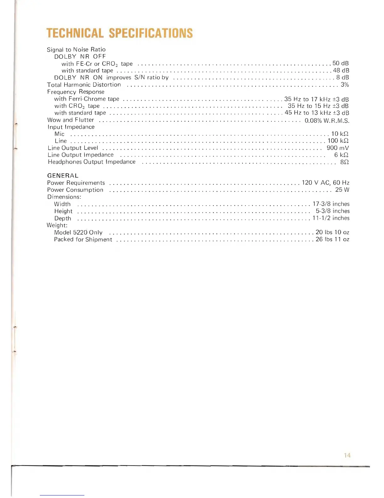 tape . . . . . . . . . . . . . . . . . . . . . . . . . . . . . . . . . . . . . . . . . . . . . . . . . . . 35 Hz to 15 Hz ±3 dB