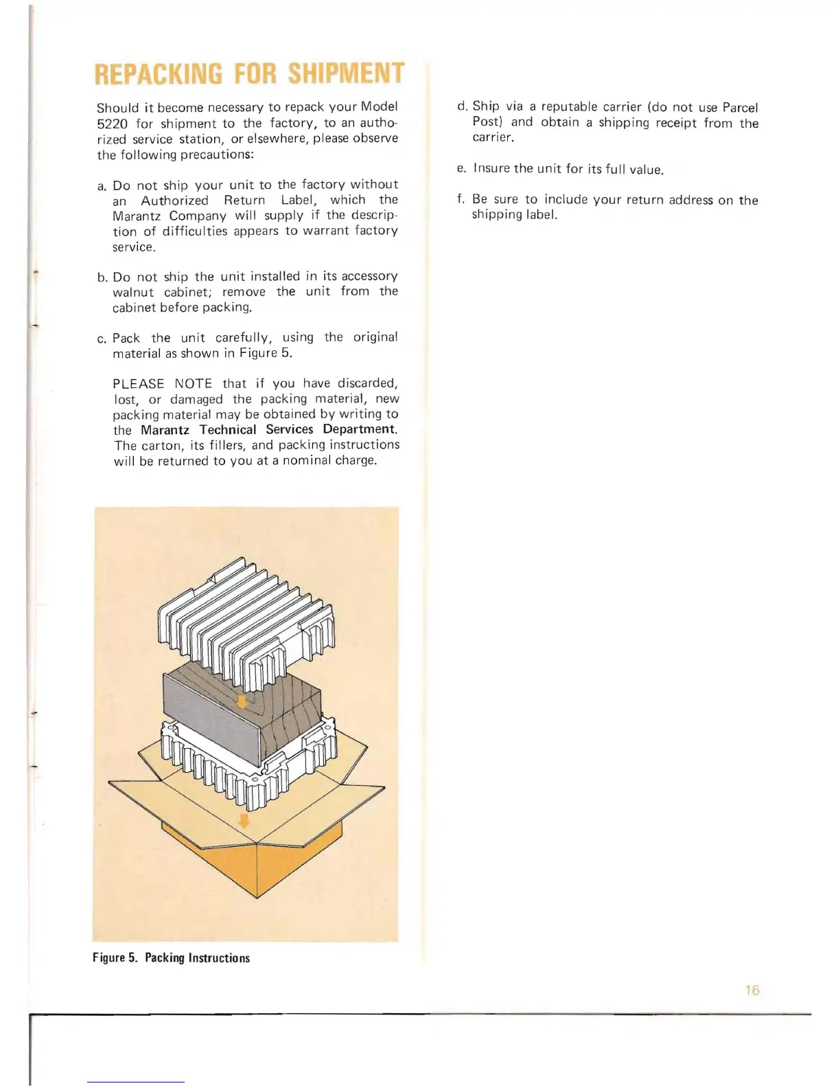 Marantz 5220 - REPACKING FOR SHIPMENT; Shipment Packing Precautions