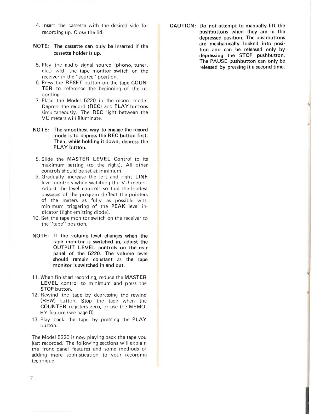 Marantz 5220 - Recording a Cassette; Rewinding and Playback; MAKING OPTIMUM CASSETTE RECORDINGS; THE TYPE AND BRAND OF TAPE YOU USE