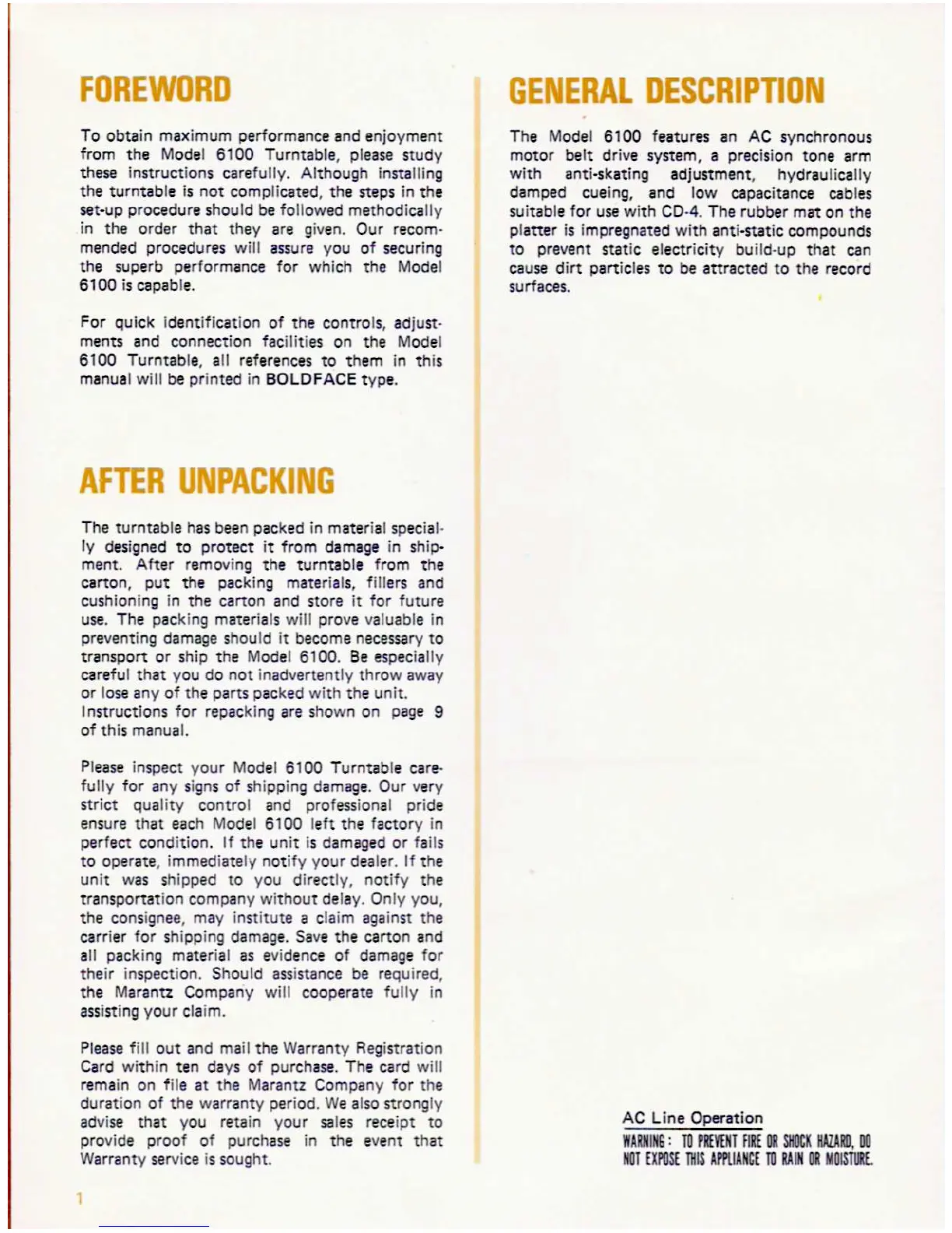 Marantz 6100 - After Unpacking; General Description