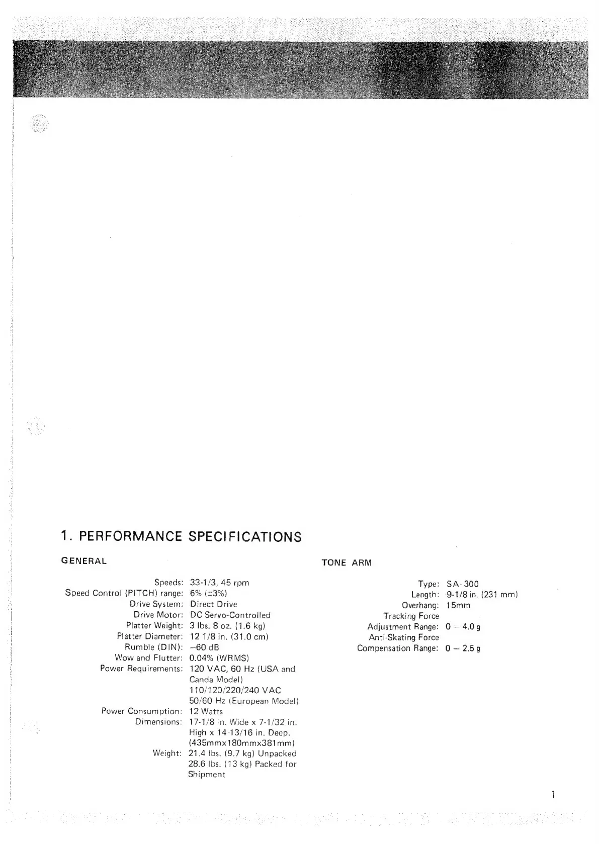 Marantz 6300 - 1. PERFORMANCE SPECIFICATIONS