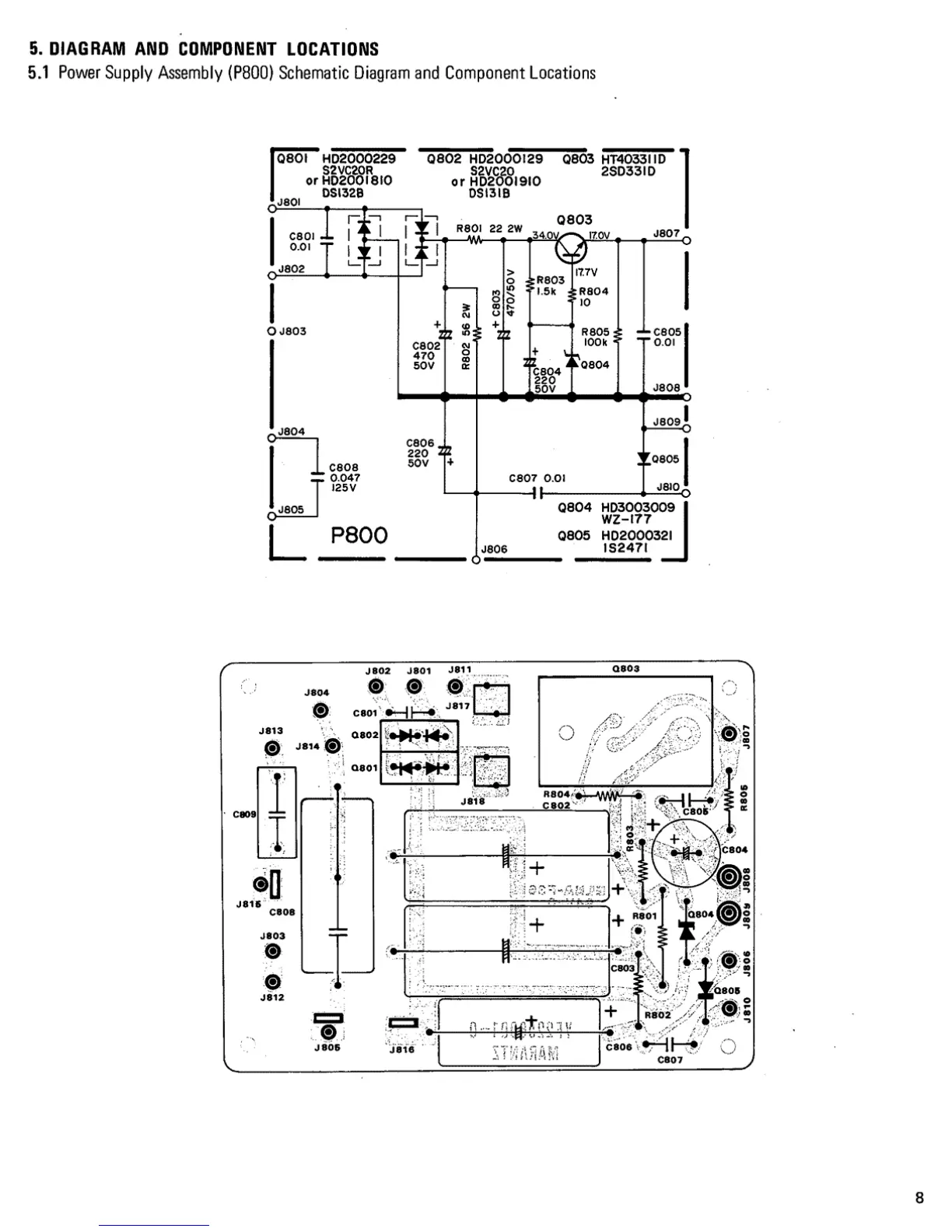 Marantz 6350 - Diagram and Component Locations; Power Supply Assembly Schematic and Locations
