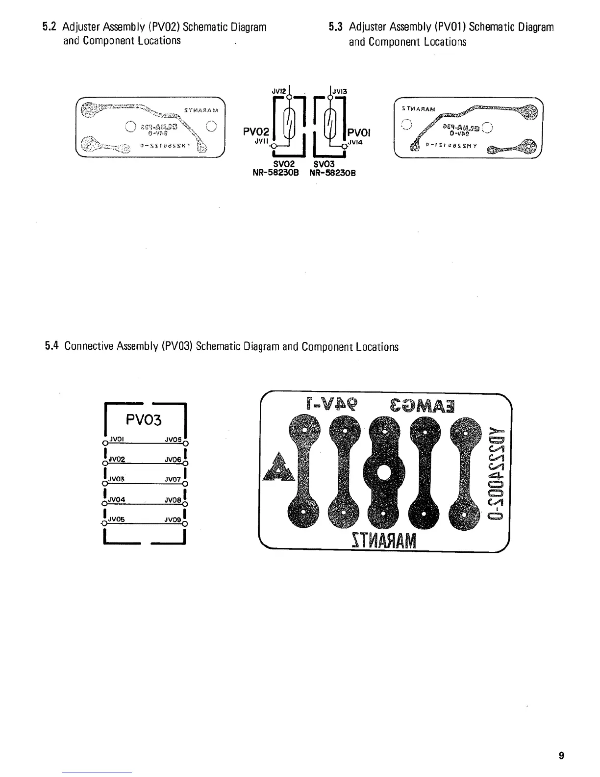 Marantz 6350 - Adjuster Assembly (PV02) Schematic and Locations; Adjuster Assembly (PV01) Schematic and Locations; Connective Assembly (PV03) Schematic and Locations