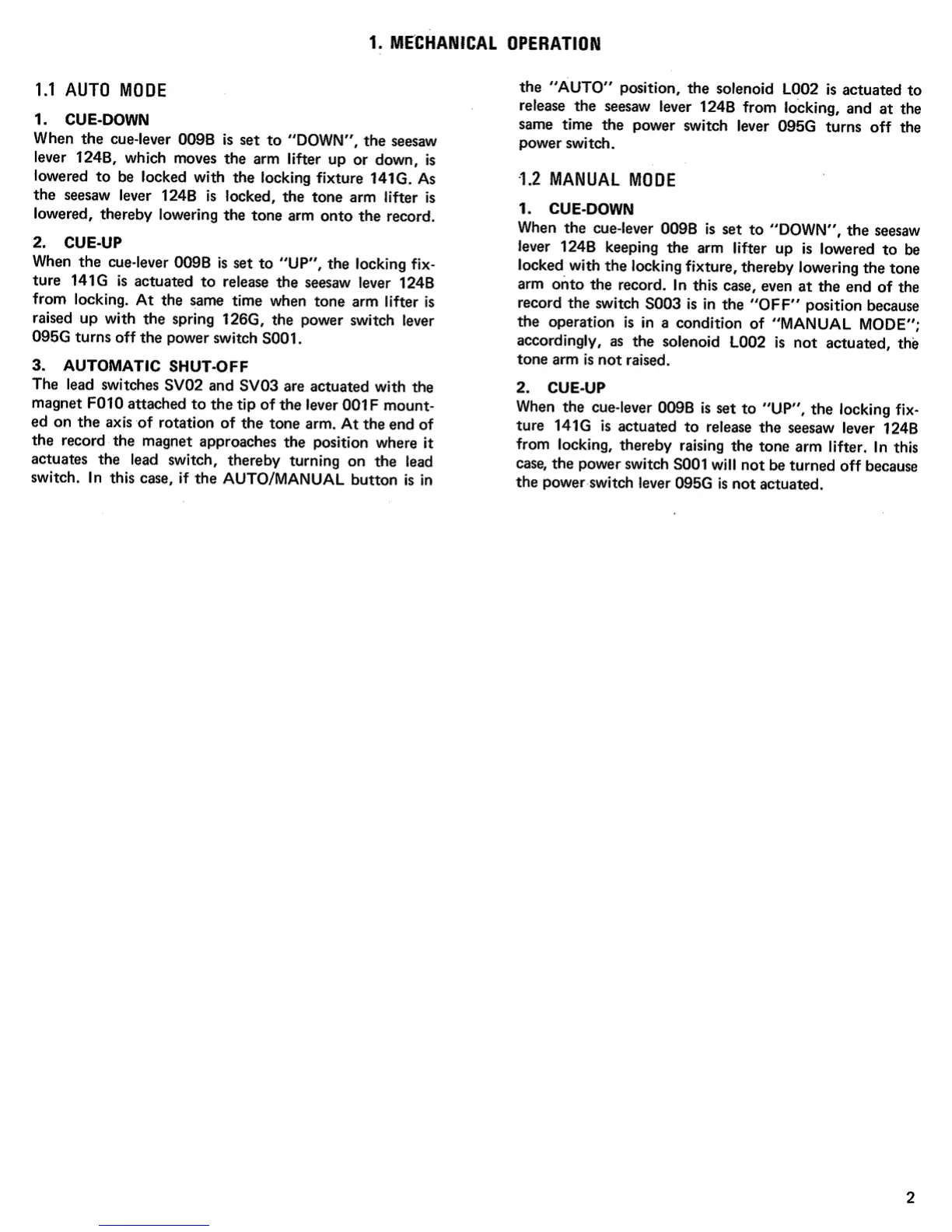Marantz 6350 - Mechanical Operation; Auto Mode Operation; Manual Mode Operation