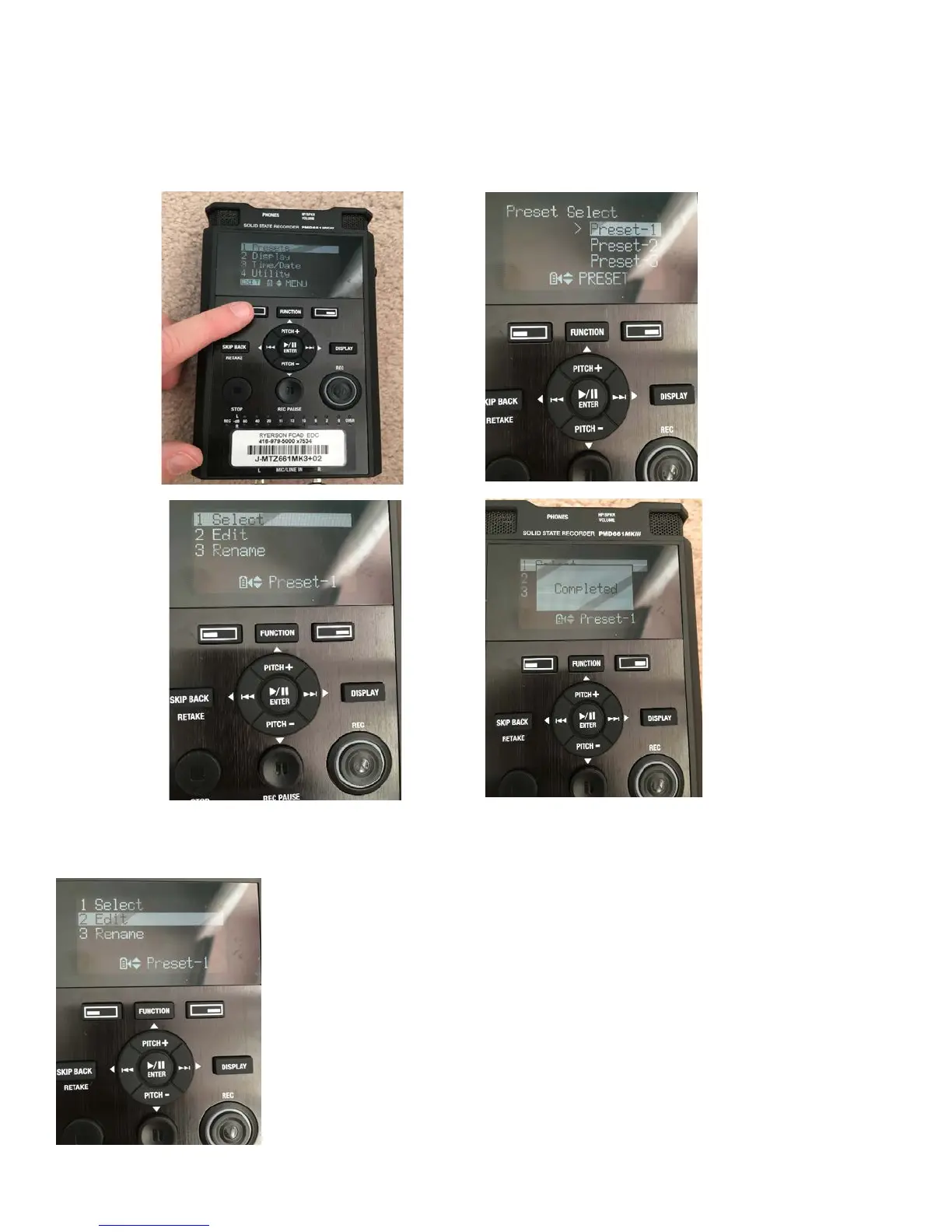 1) To reload the preset, the button under ‘Menu’ (to the left of the ‘Function’ button). Use the arrow keys