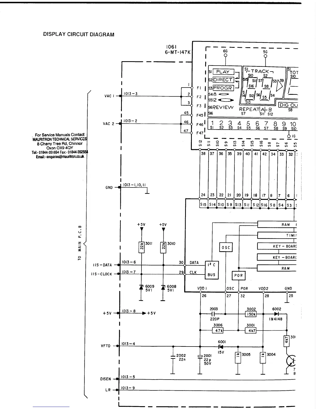 Marantz 74 CD-52/22B - Display Circuit Diagram