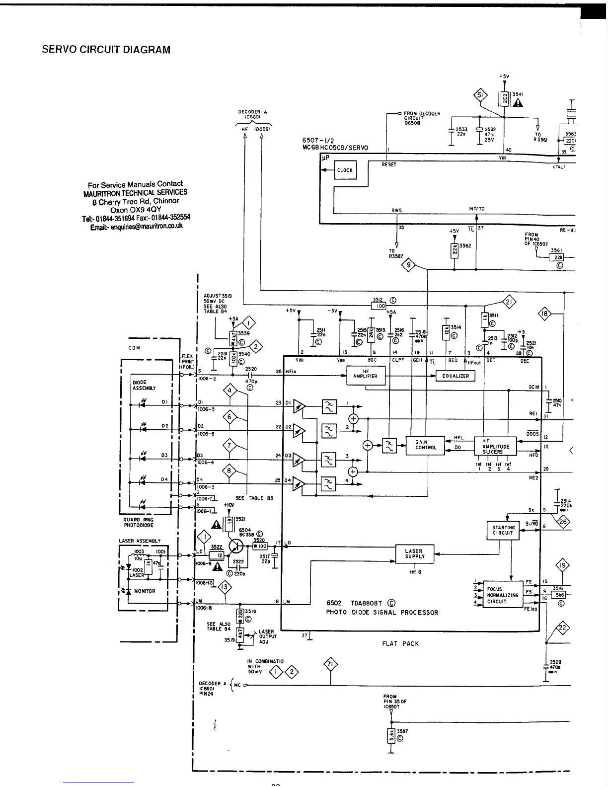 Marantz 74 CD-52/22B - Servo Circuit Diagram
