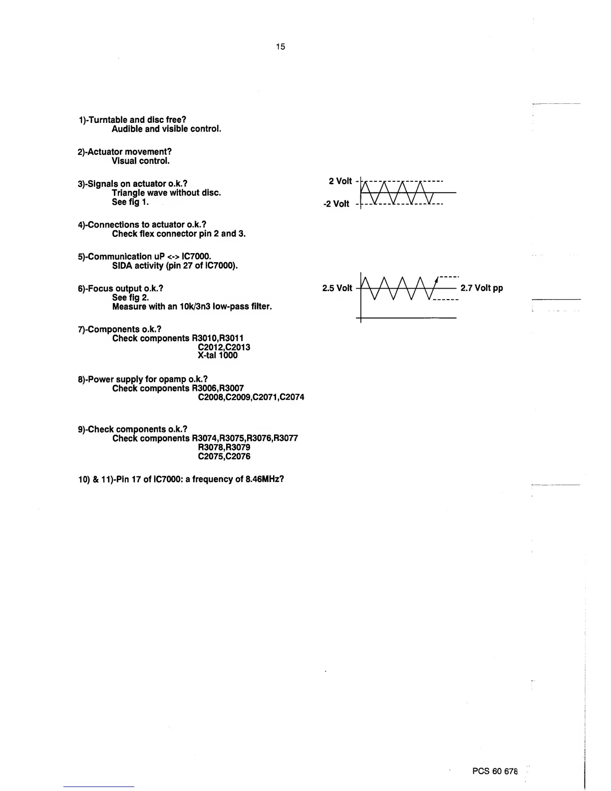 Marantz 74 CD38/o1B - Fault Finding - Actuator and Components; Actuator Movement and Signals; Component Checks