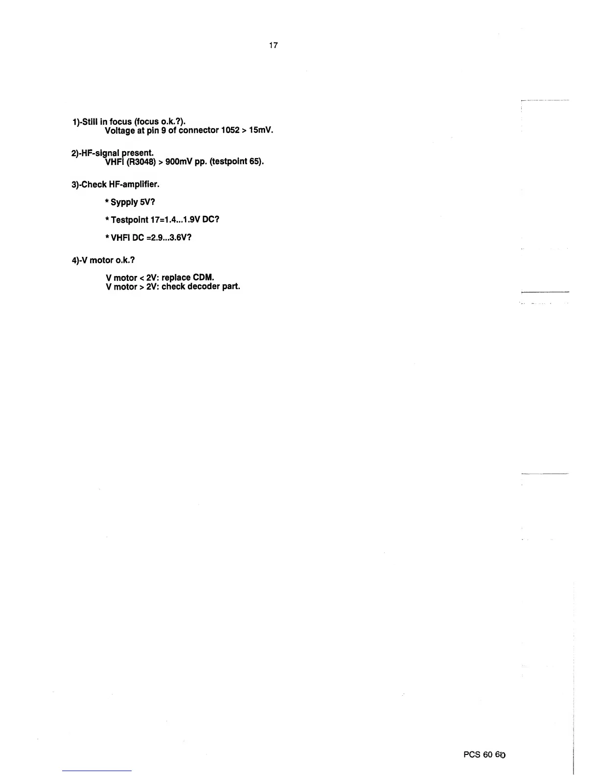 Marantz 74 CD38/o1B - Turntable Motor and HF Signal Checks; Focus and HF Signal Presence; HF Amplifier Checks; Motor Voltage Check