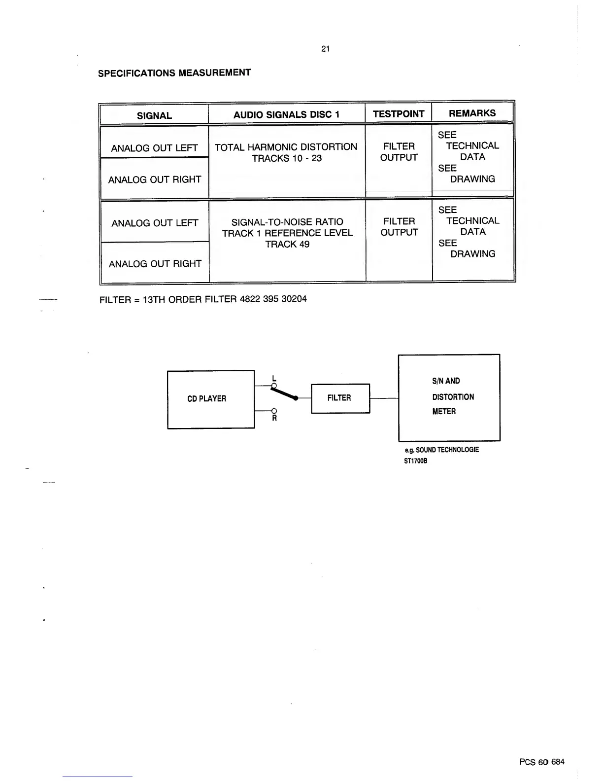 Marantz 74 CD38/o1B - Specifications Measurement; Total Harmonic Distortion Measurement; Signal-to-Noise Ratio Measurement