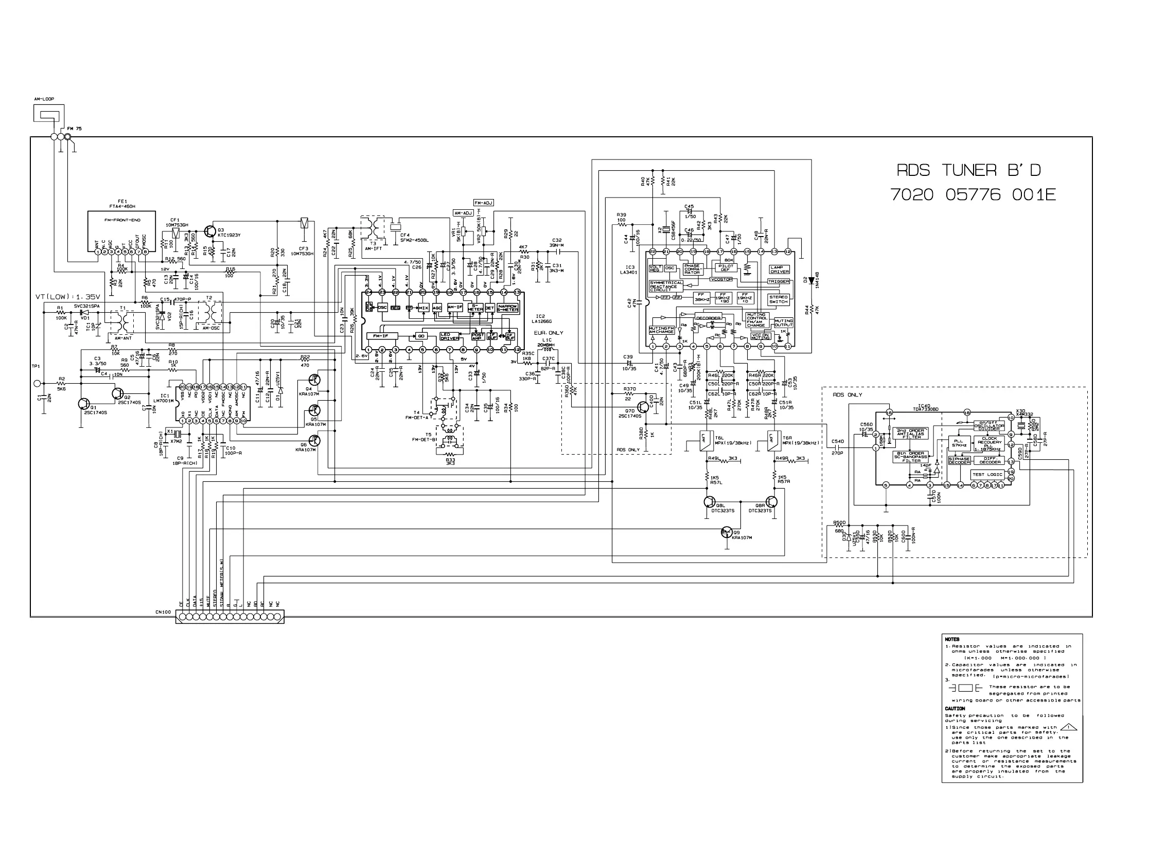 TUNER SCHEMATIC DIAGRAM ( SR480/01B/02B VERSION)
