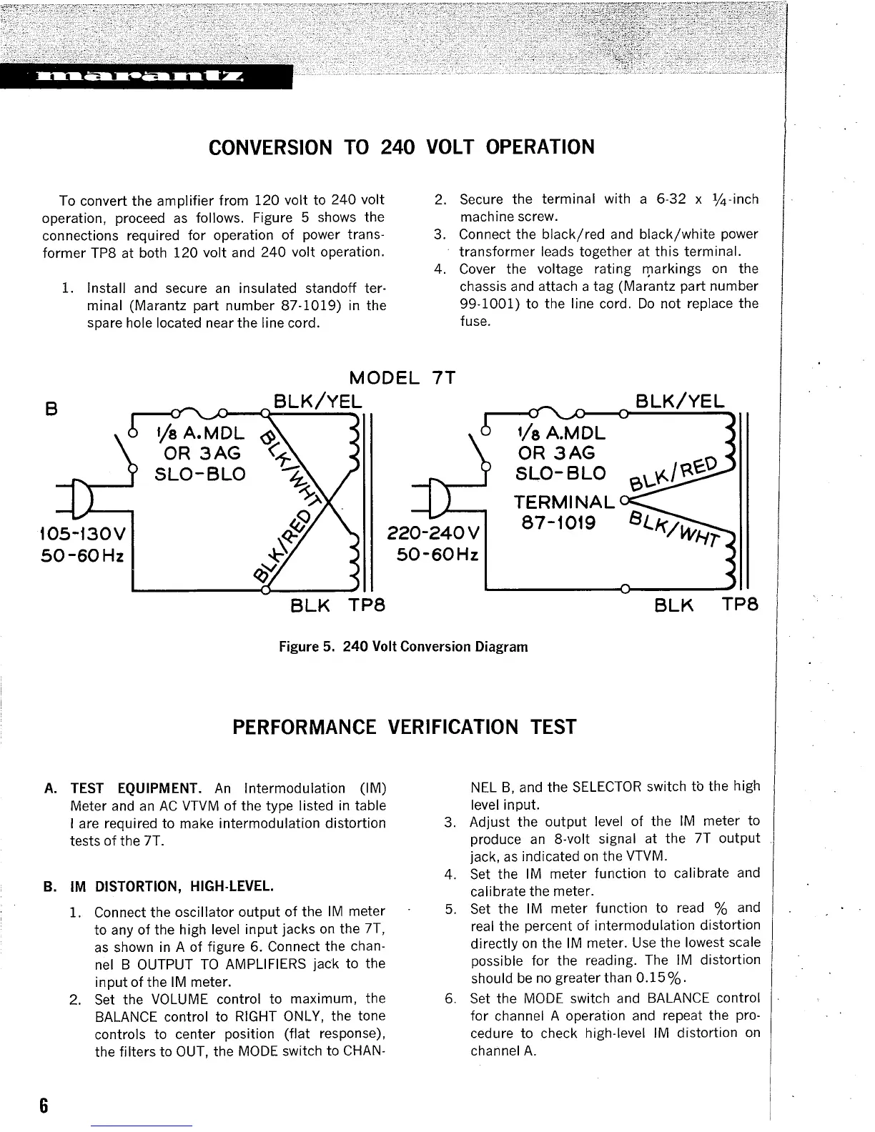 Marantz 7T - Conversion to 240 Volt Operation; Performance Verification Test