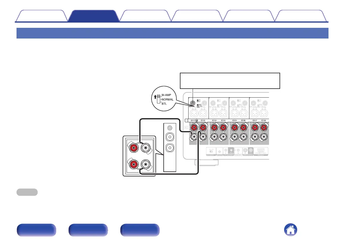 Be sure to configure the and NORMAL/BI-AMP/BTL selector setting before turning the power on. If you try to change these settings after turning the power on, the settings