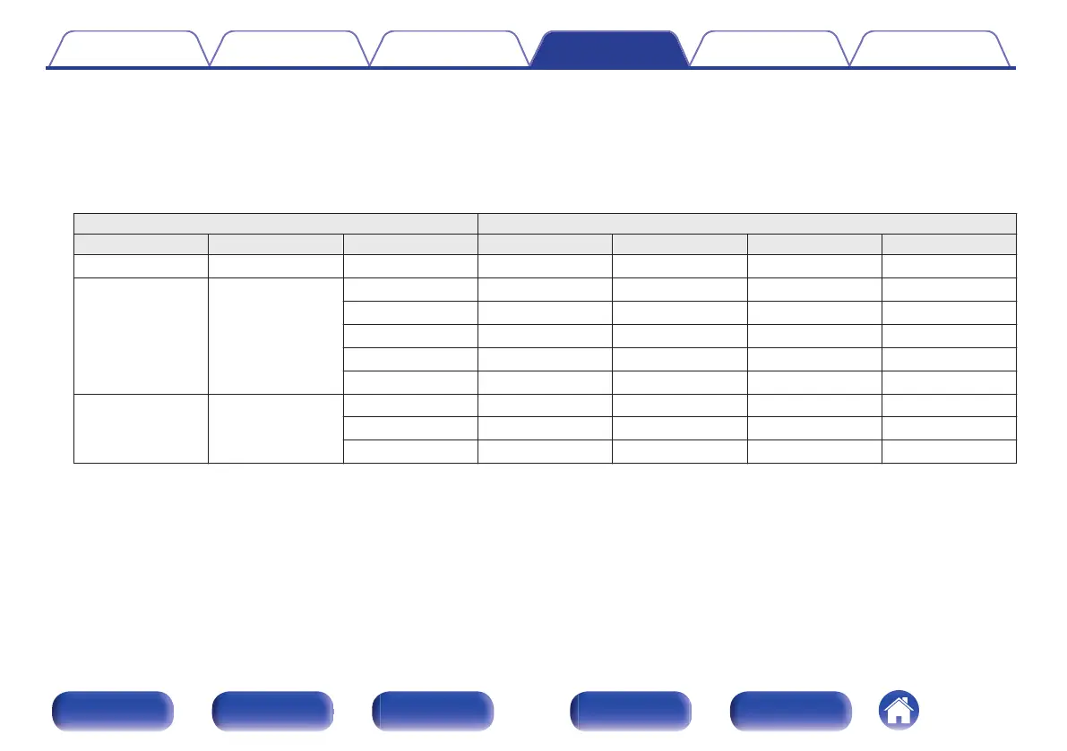 z This can be selected when using Surround Back speakers. Set “Floor” in the menu to “5ch & SB” or “5ch & SB & FW”. (v p. 216)