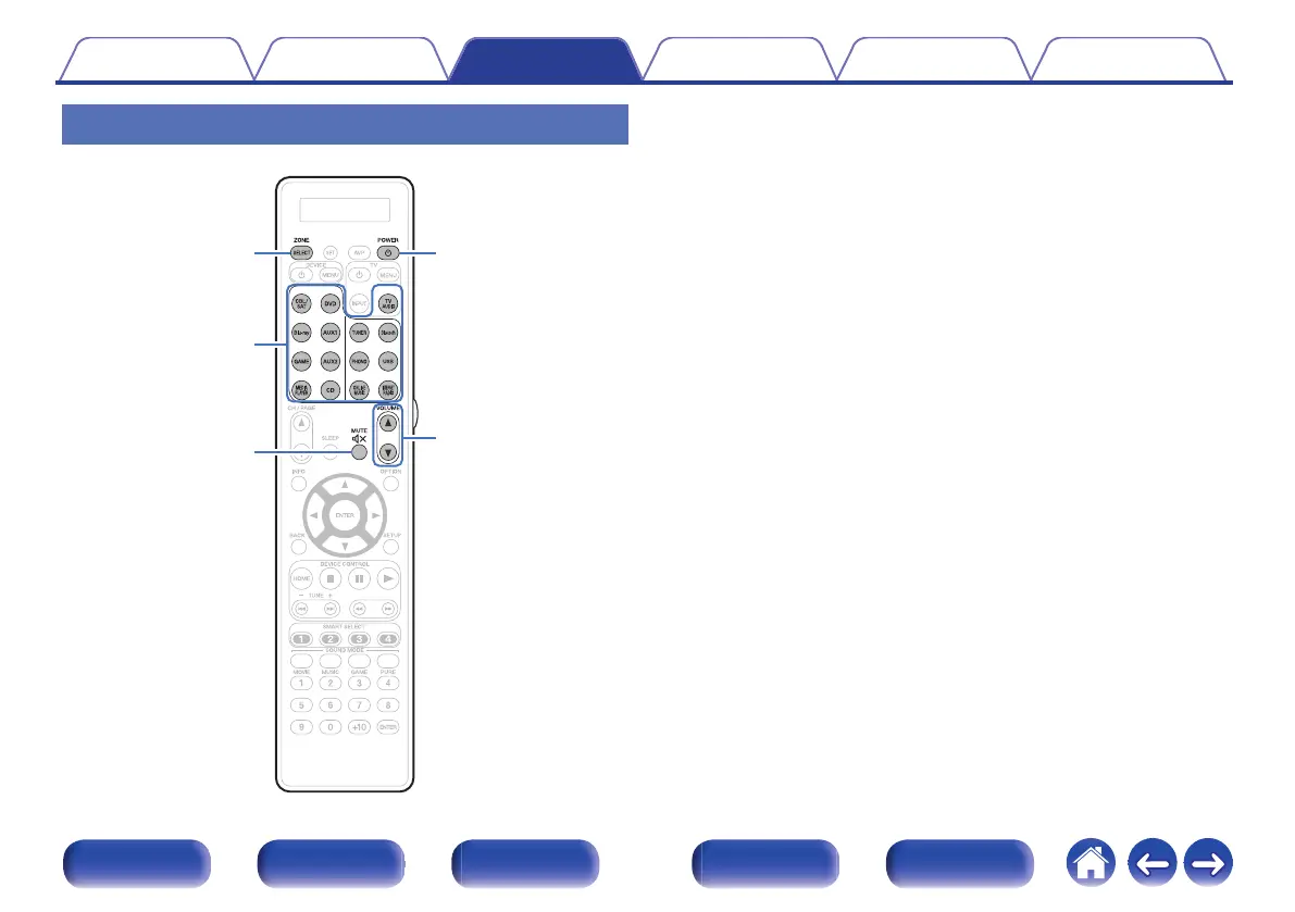 Power in ZONE2 or ZONE3 can be turned on or off by pressing
