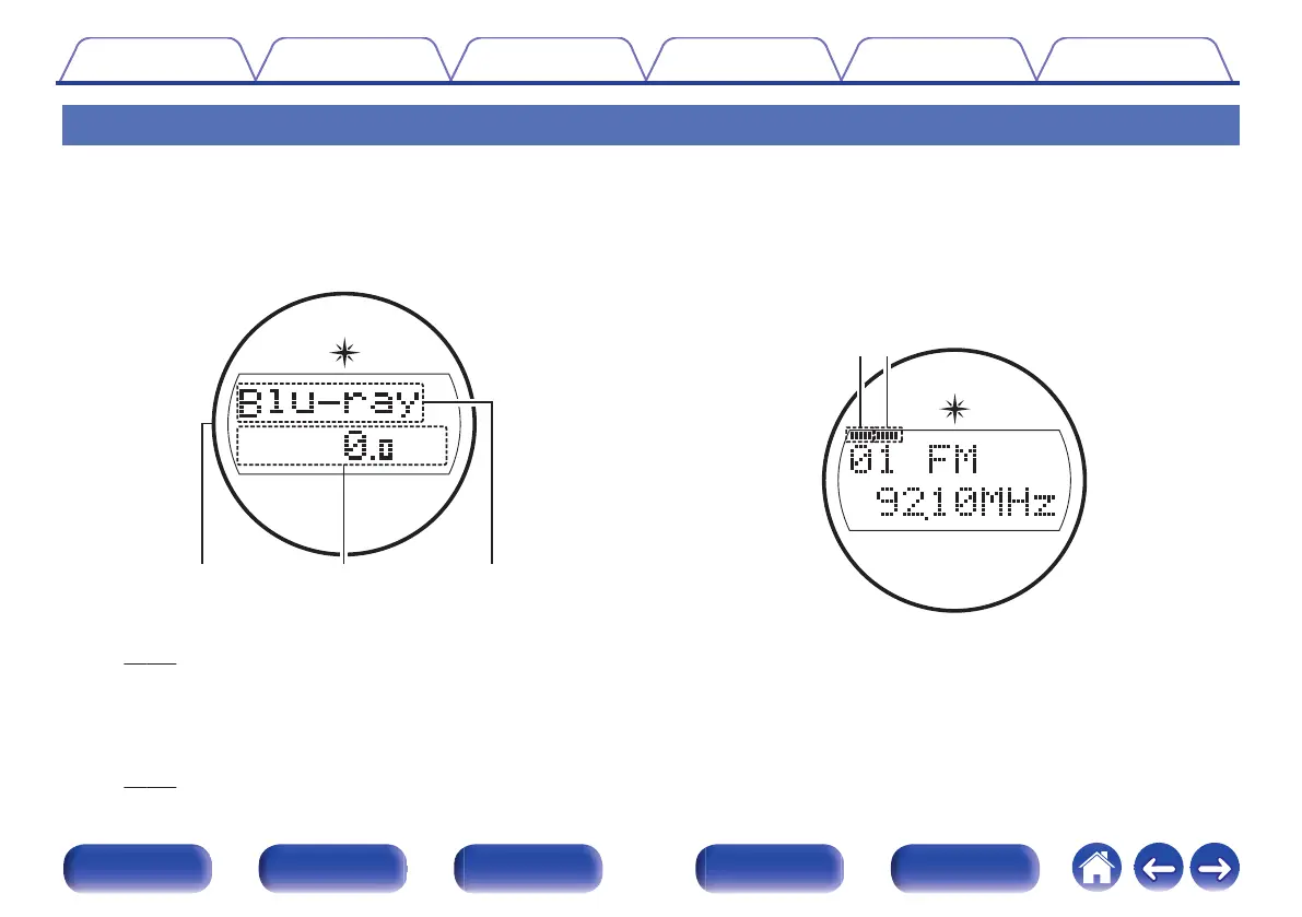 The input source name, sound mode, setting values and other information are displayed here.