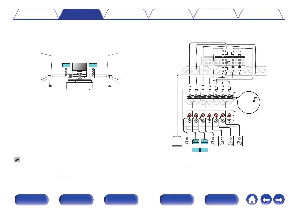 Set “Floor” - “Layout” to “5ch” and “Dolby Sp” to “2ch” in the menu when connecting in this configuration. (v p. 218)