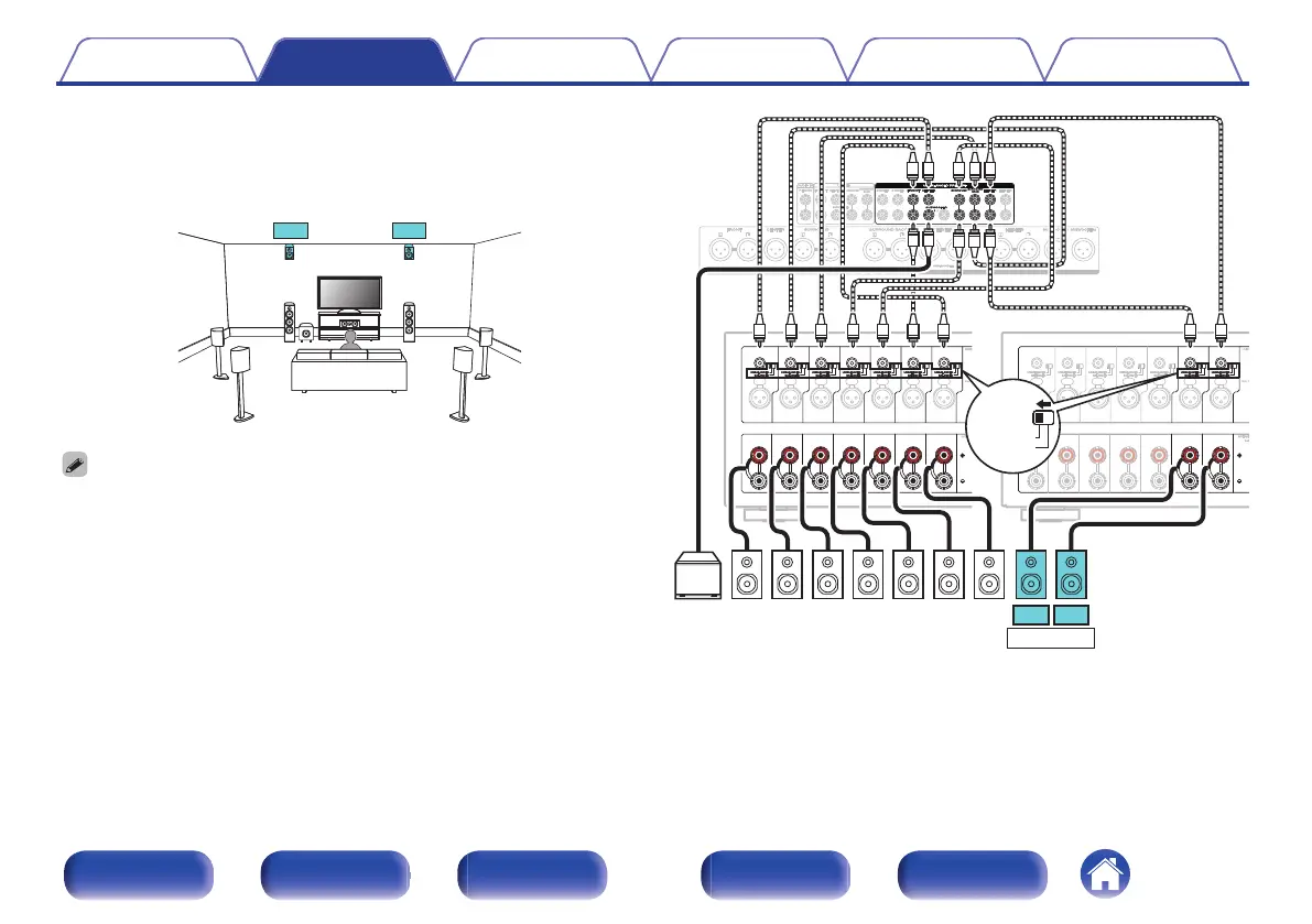 The rear height speakers can be connected instead of the front height speakers.