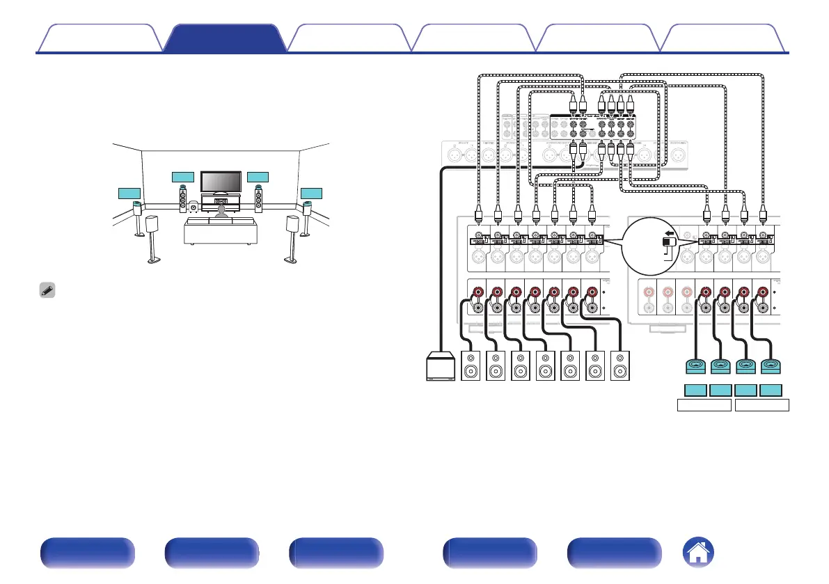 Set “Height” - “Dolby Sp” to “4ch” in the menu when connecting in this