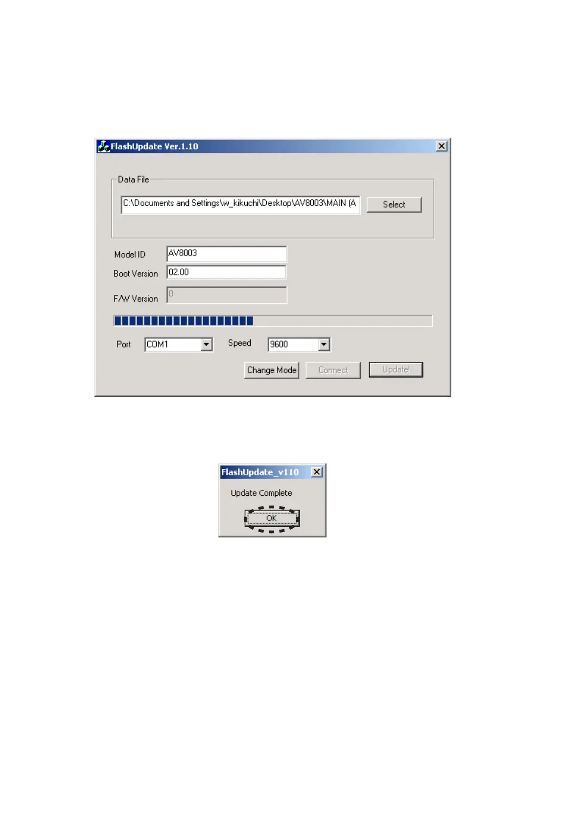 dialog box saying "Update Complete" appears.