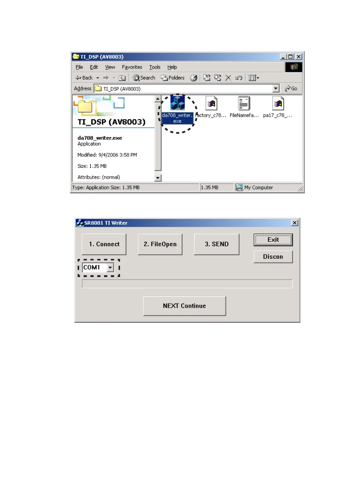 da708_writer.exeをダブルクリックし、SR8001 TI Writer10.