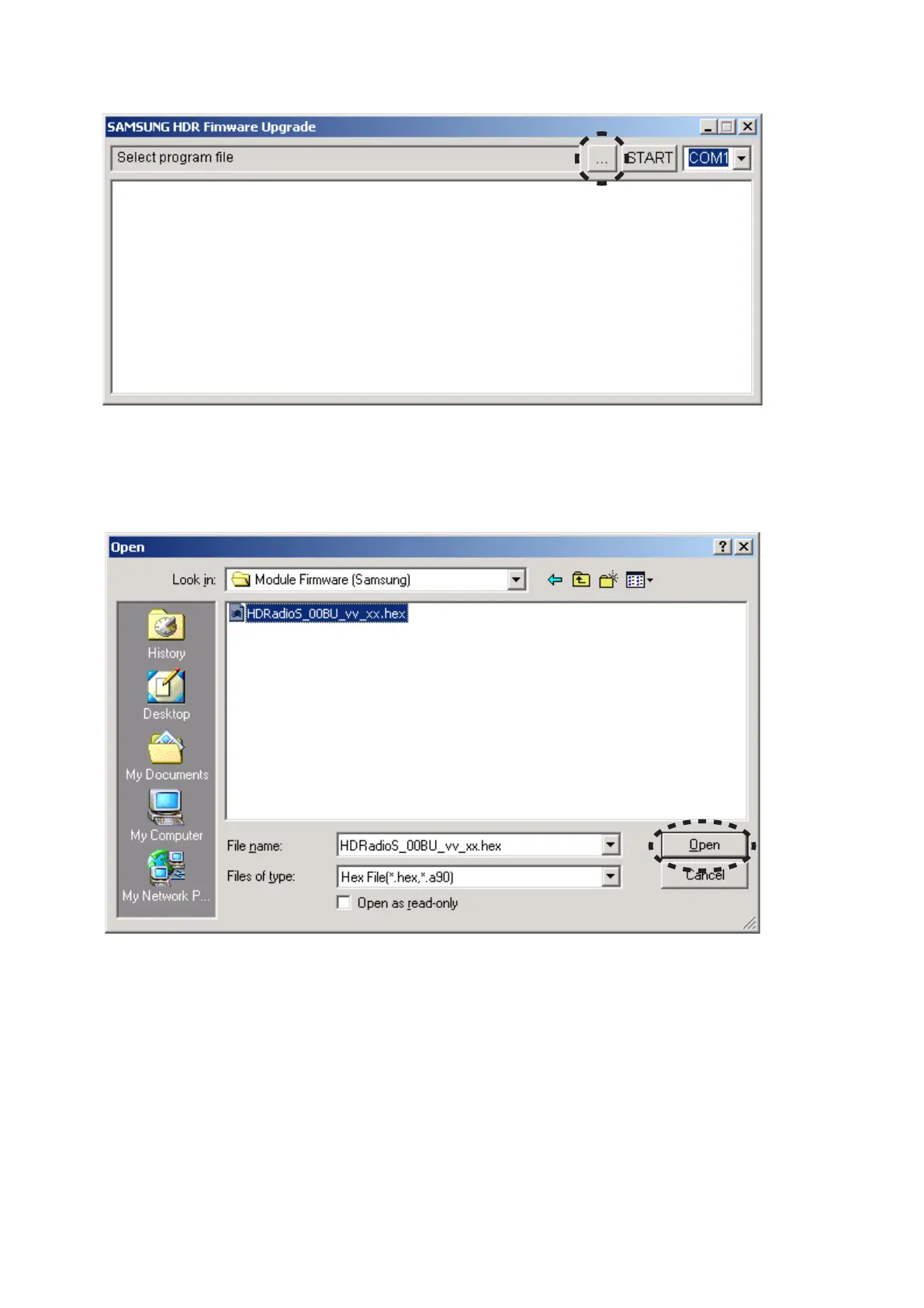 HDRadioS_00BU_vv_xx.hexを選択し、9. Openをクリック