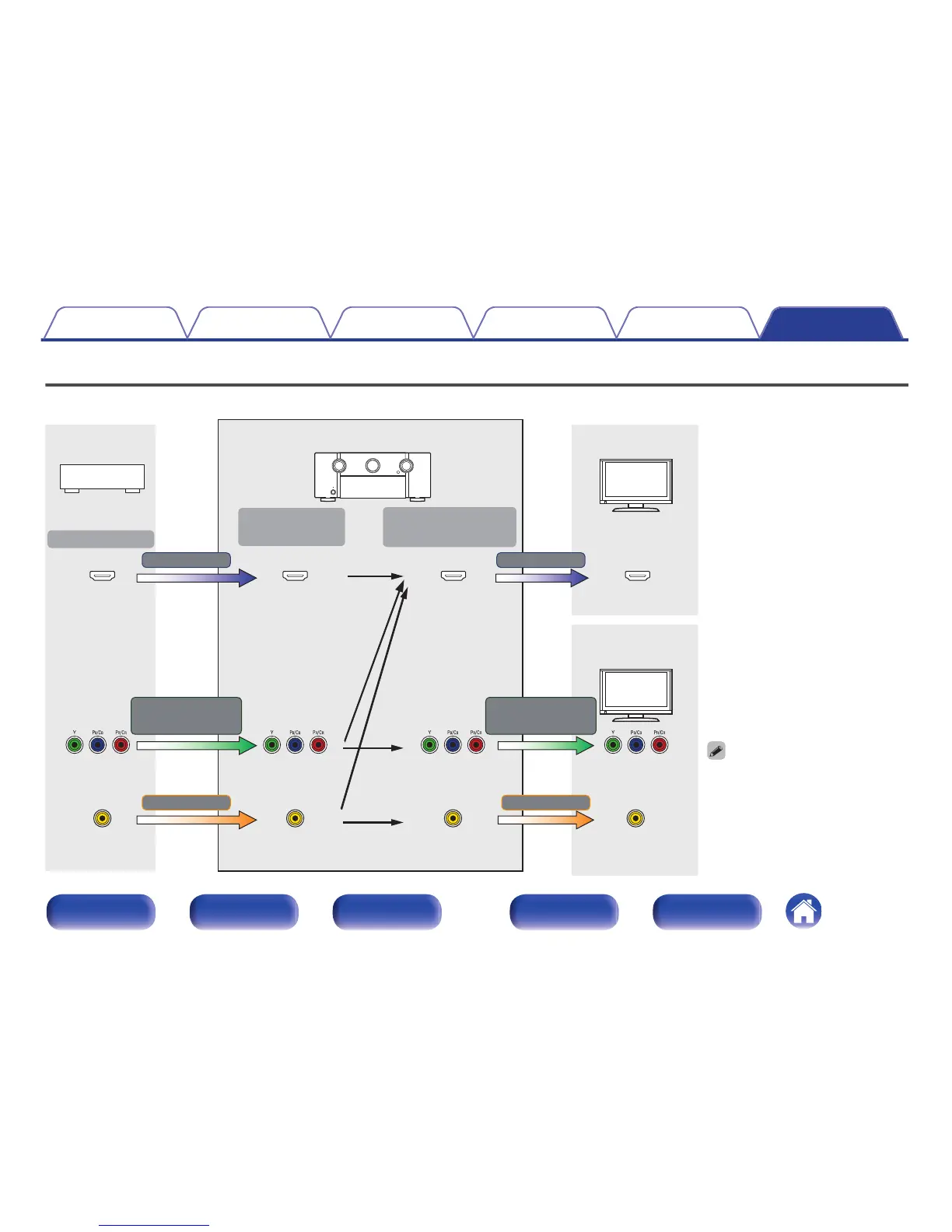 This unit automatically converts the input video signals as shown in the diagram before outputting them to the TV.