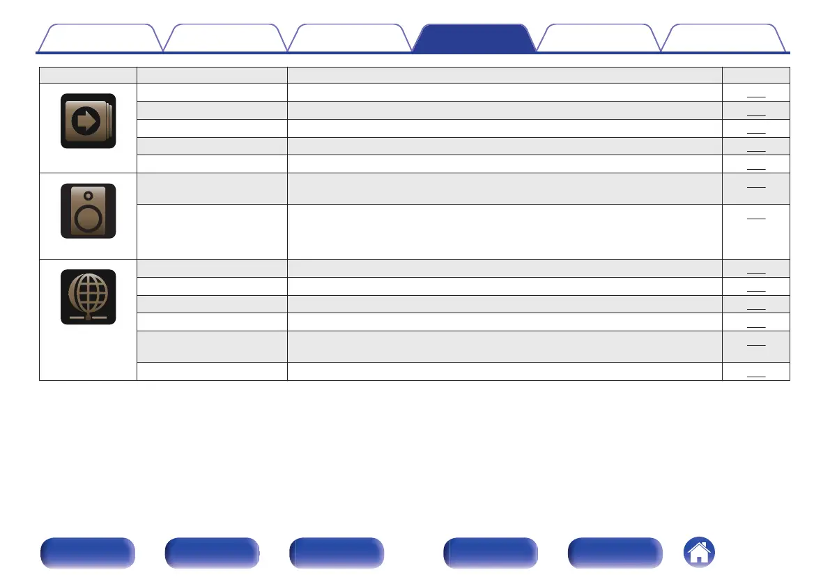 Setting items Detailed items Description Page
