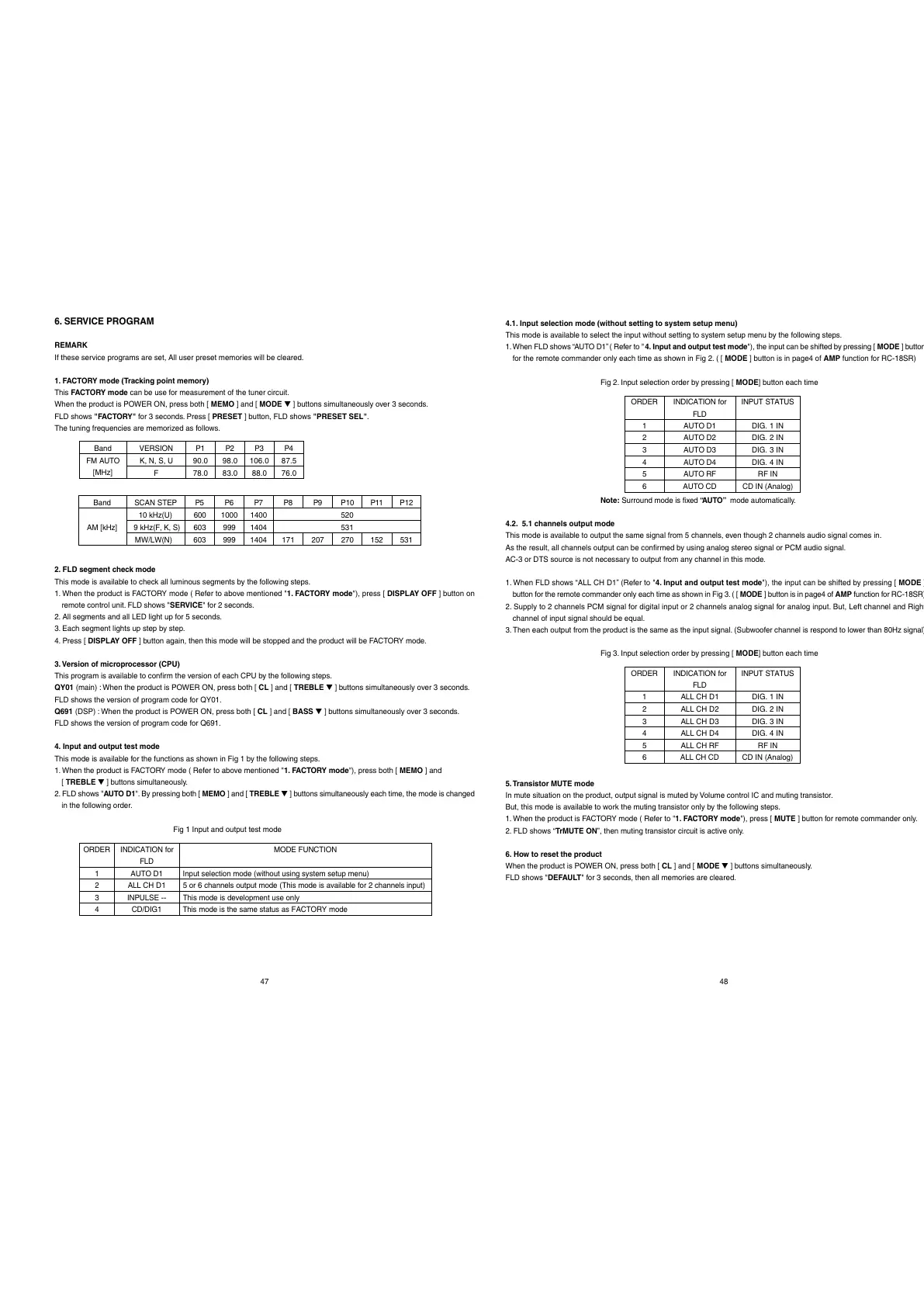 Fig 3. Input selection order by pressing [ MODE] button each time