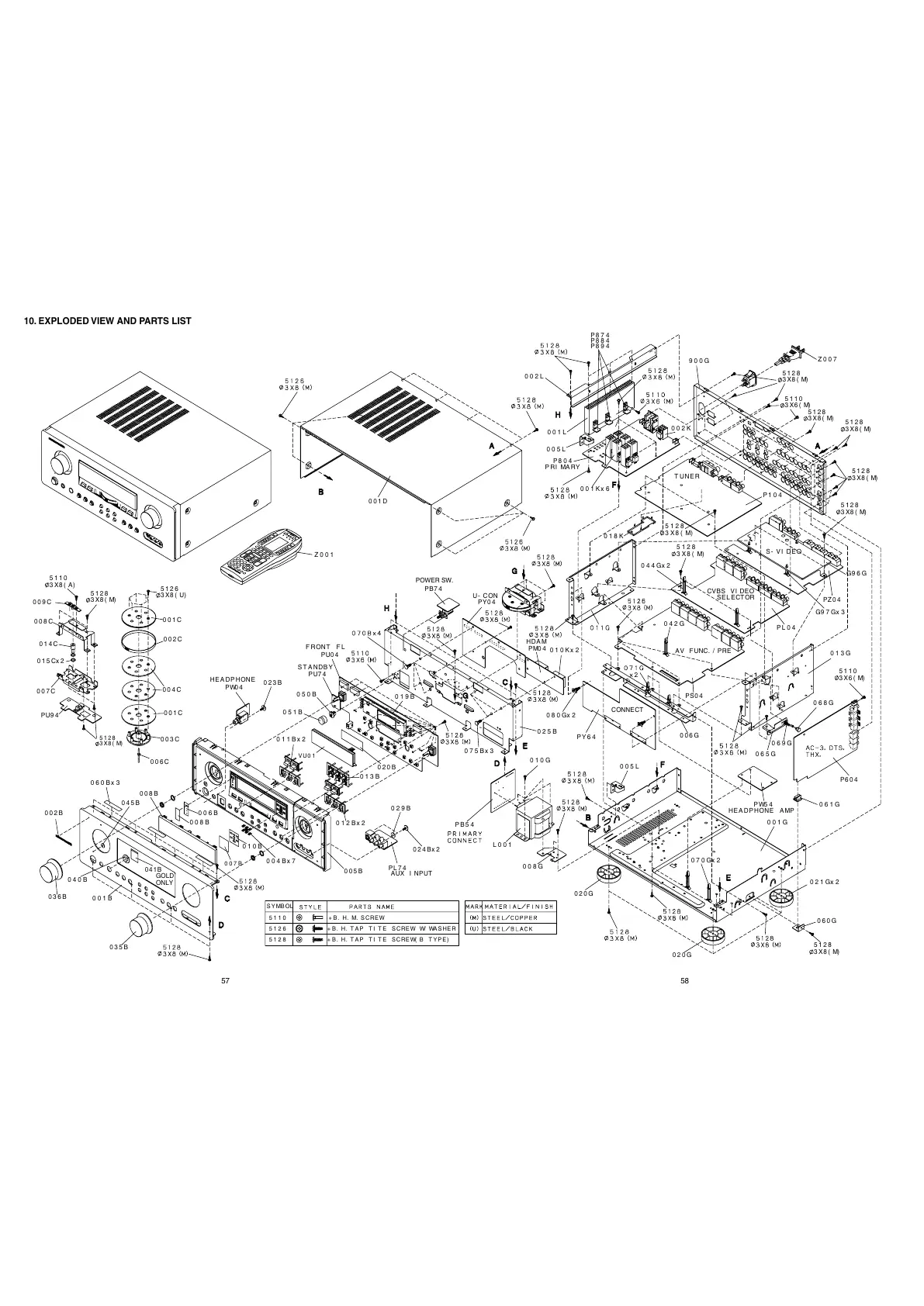 Marantz AV9000 - 10. Exploded View and Parts Identification