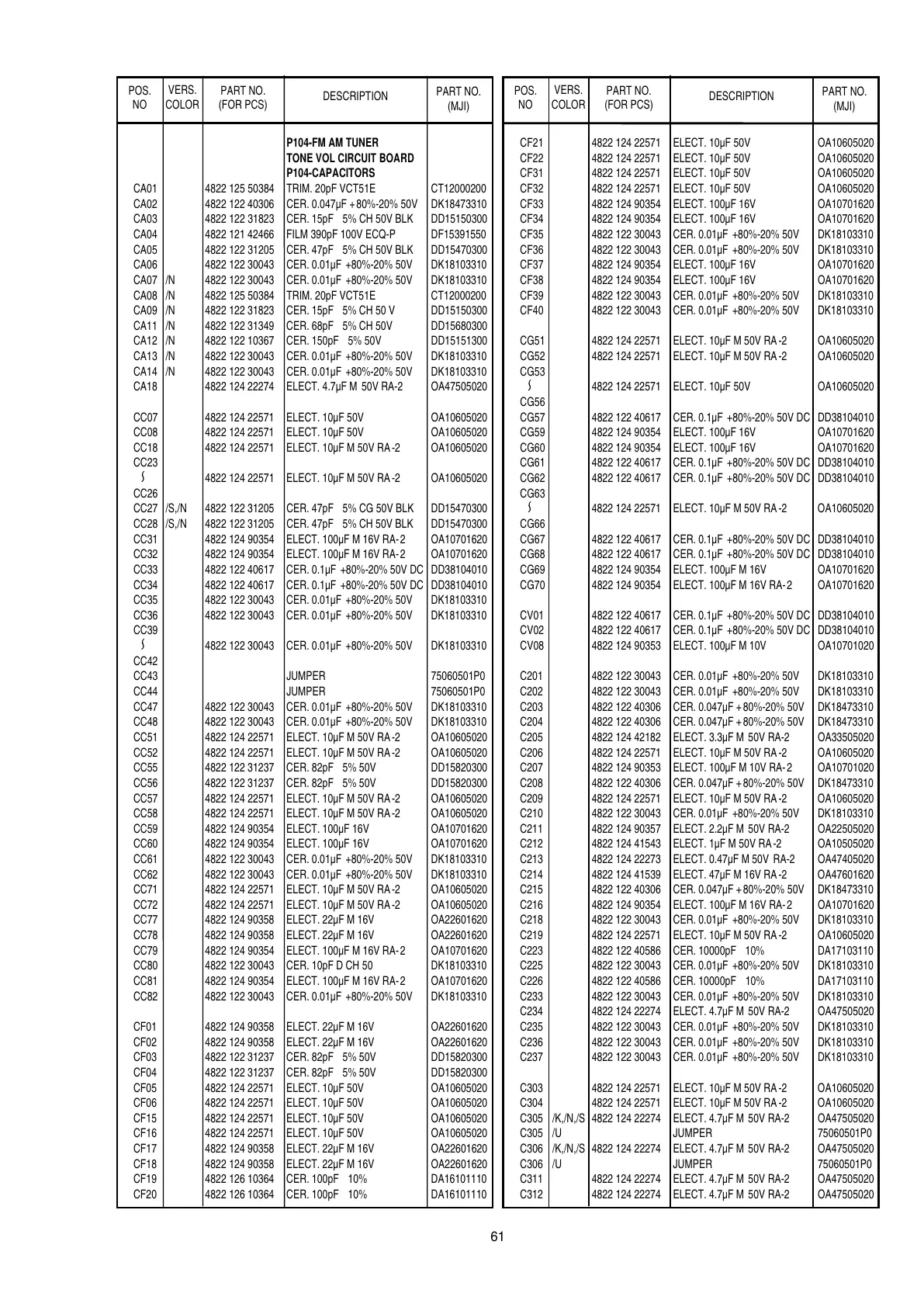 CG68 4822 122 40617 CER. 0.1µF +80%-20% 50V DC DD38104010