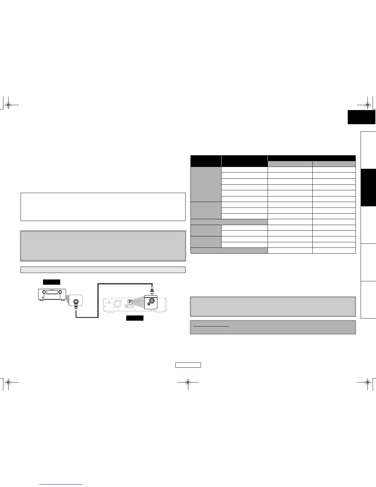 • This table applies only when HDMI is not connected or the “Audio Mute” is selected in “HDMI Audio