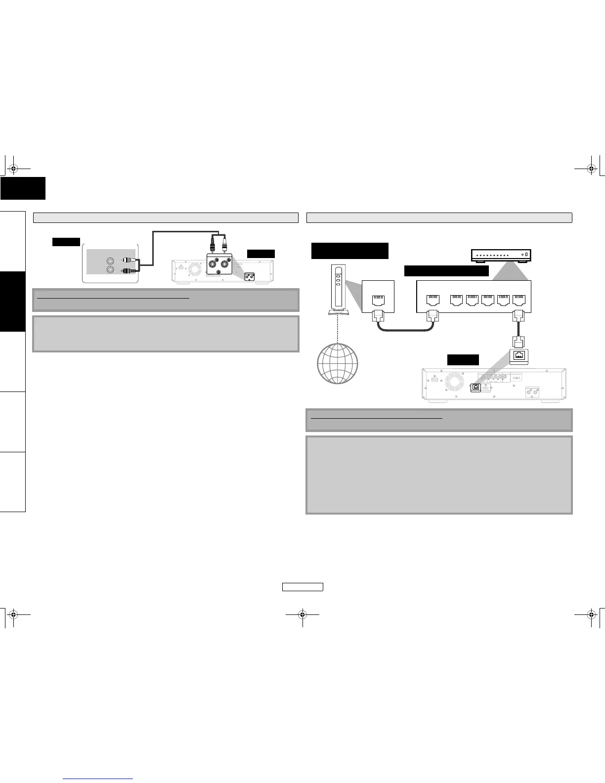 • Do not insert any cable other than a LAN cable to the NETWORK terminal to avoid damaging the