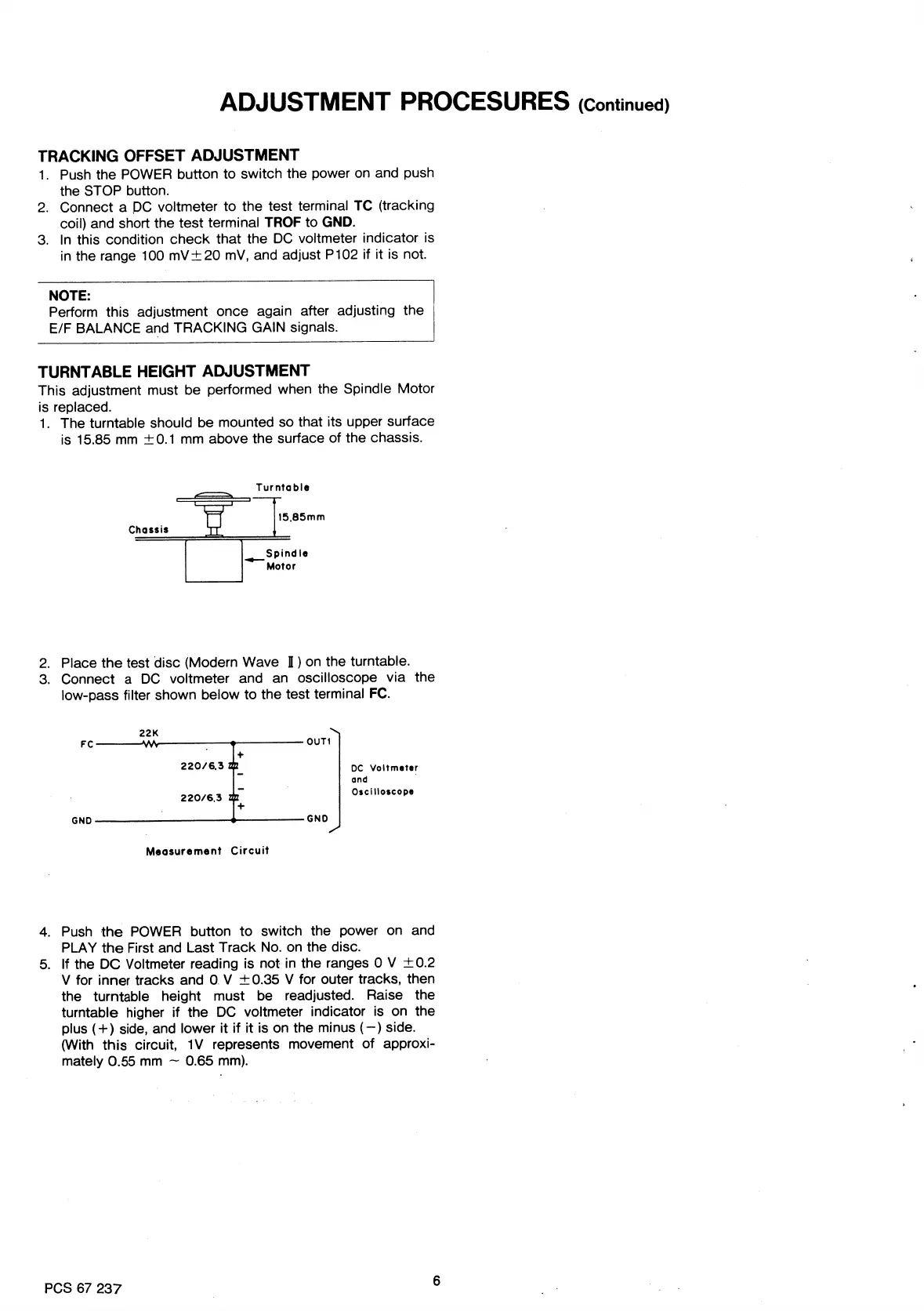 Marantz CC-52 - Tracking Offset Adjustment; Turntable Height Adjustment