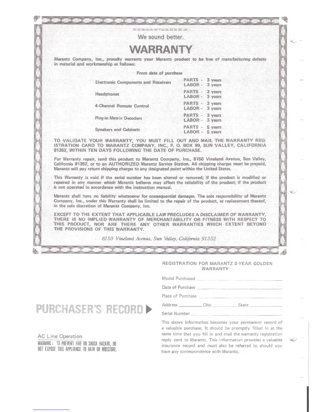 this produ.ct,to Marantz COmpa"y, lnt:,