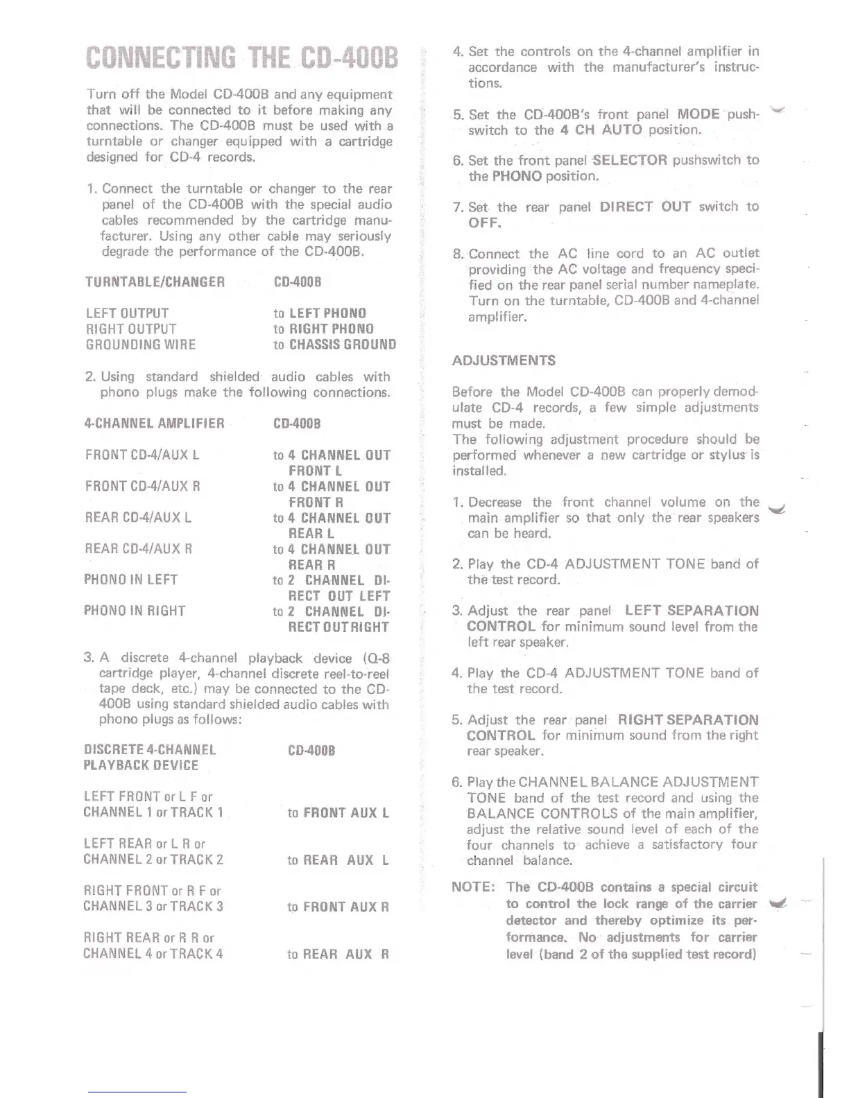ulate CD-4 records, a few simple adjustments