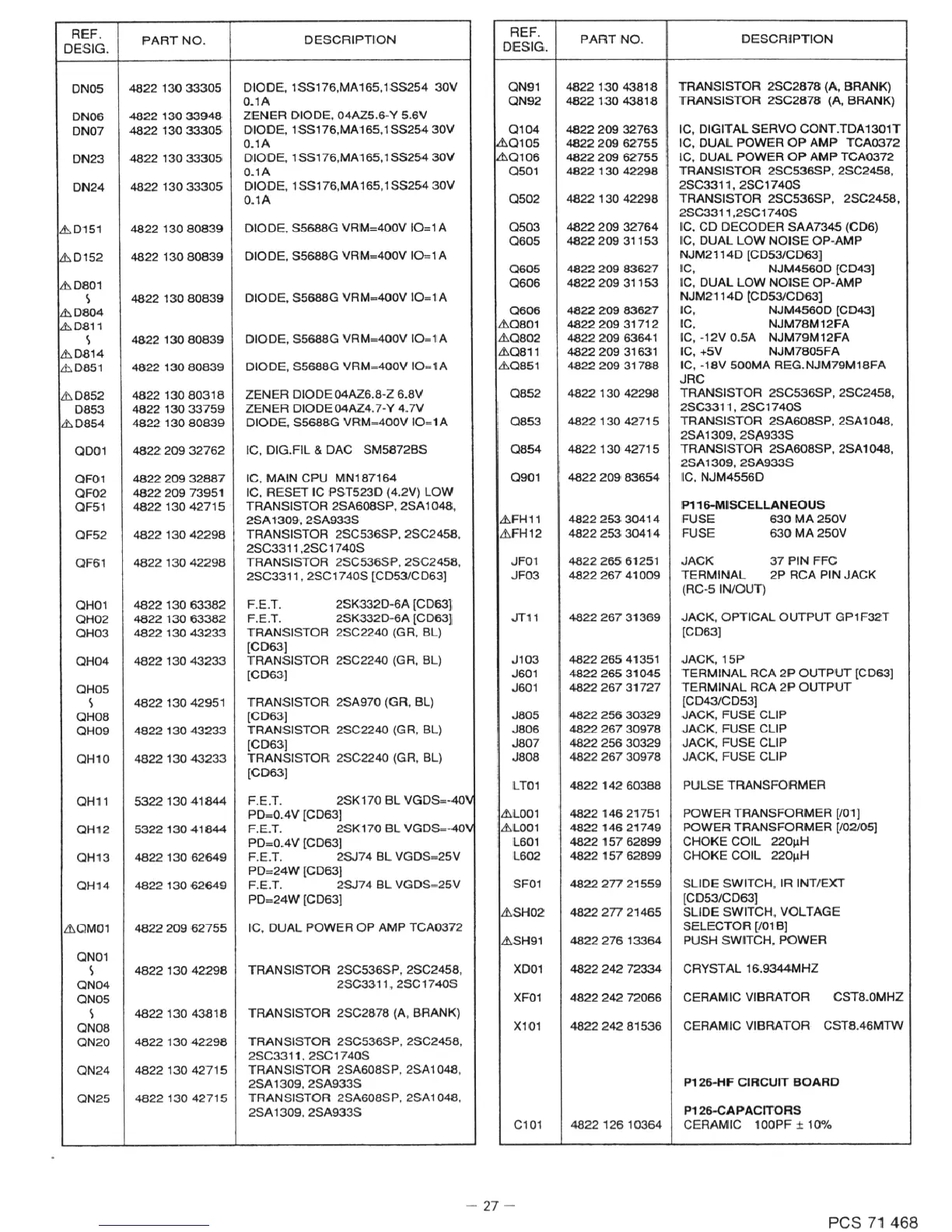 Marantz CD-43 - Semiconductors and Miscellaneous Parts List